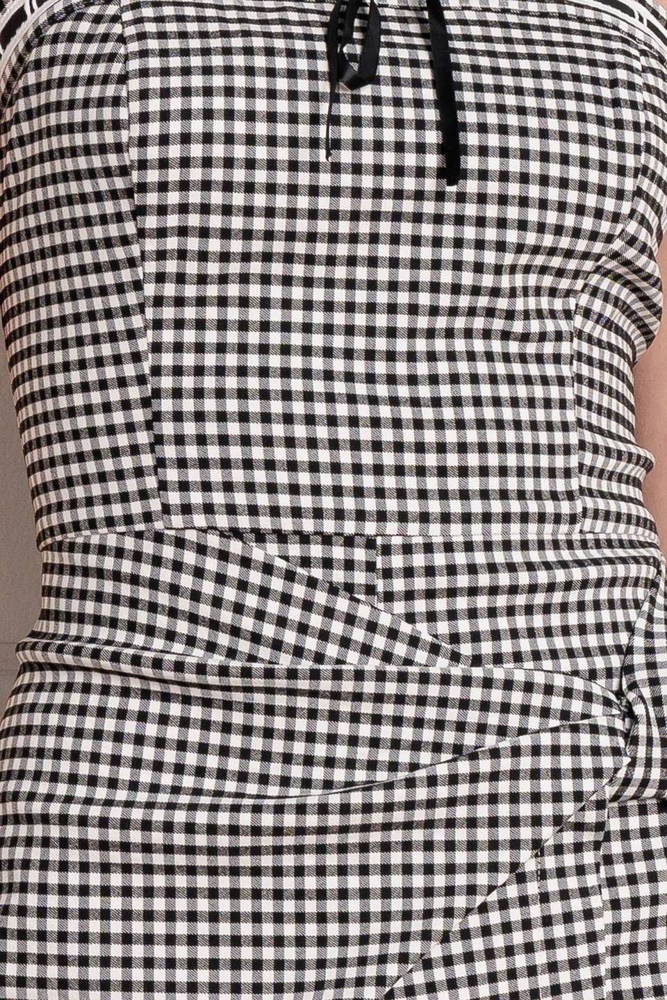 Un mono corto de tejido vichy con escote recto con tirantes, falda pantalón delantera cruzada y cierre de cremallera en la espalda.