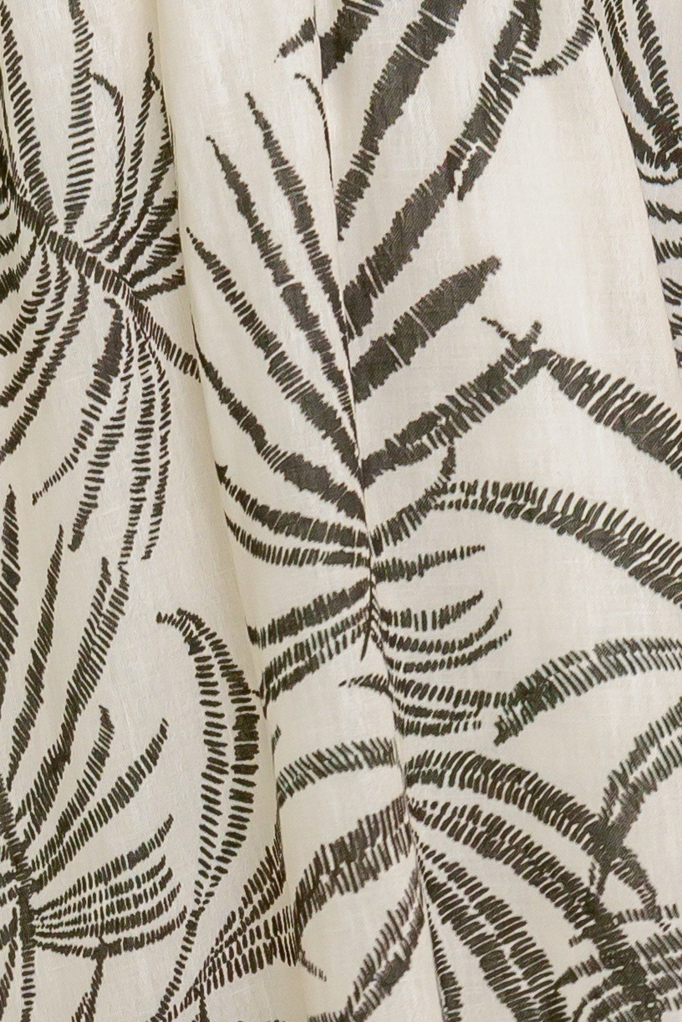 Un vestido largo estampado de tejido plano con escote en V, tirante con ribete de ganchillo y corpiño trasero fruncido.