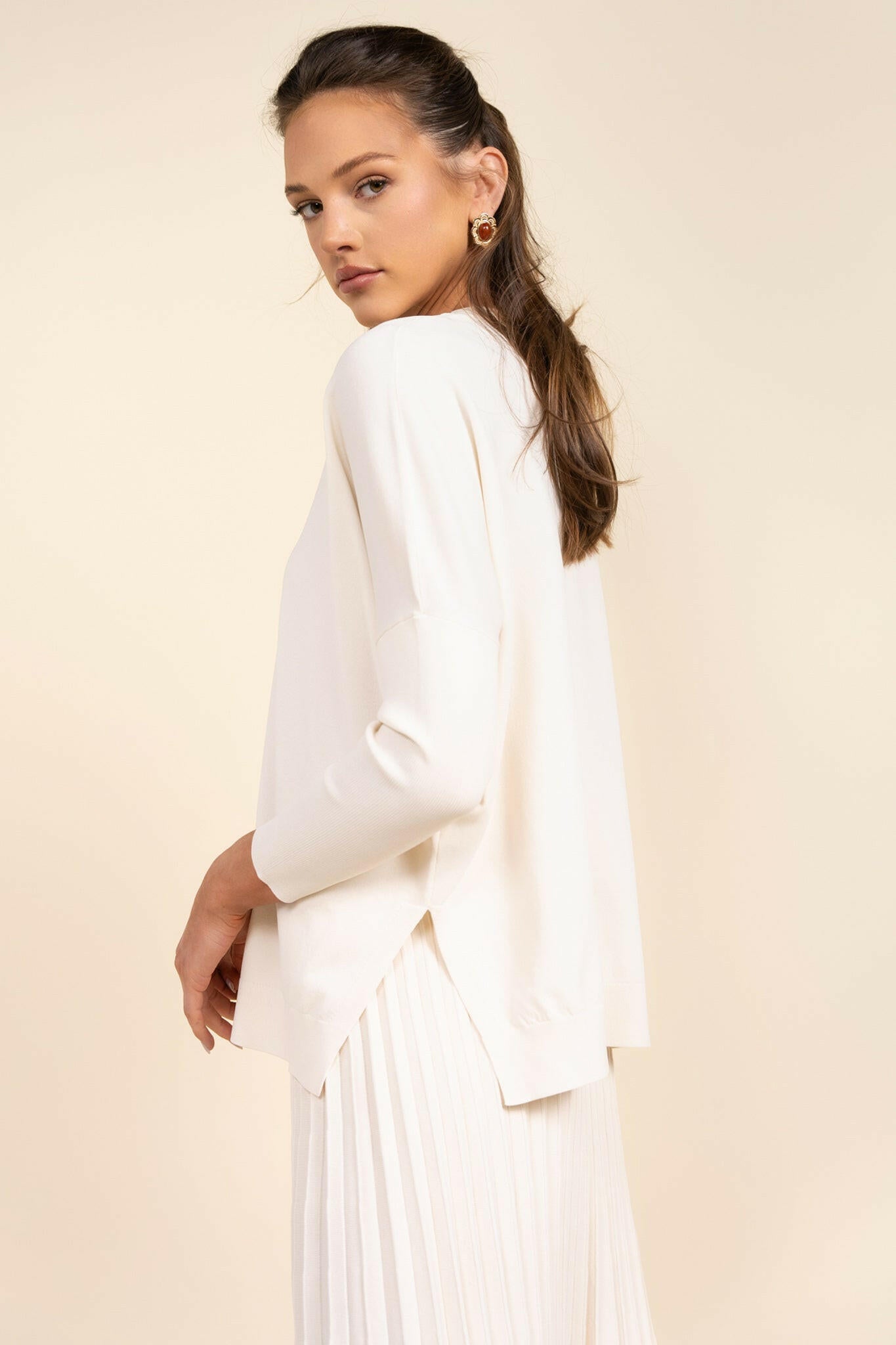 El top Montia está confeccionado en un tejido de punto ligero que ofrece una comodidad excepcional y un estilo sofisticado. Las mangas dolman le dan un toque de elegancia, mientras que las aberturas laterales de 15 cm permiten una gran libertad de movimiento. Luce un estilo chic y cómodo con el popular top Montia de Apparelel.
