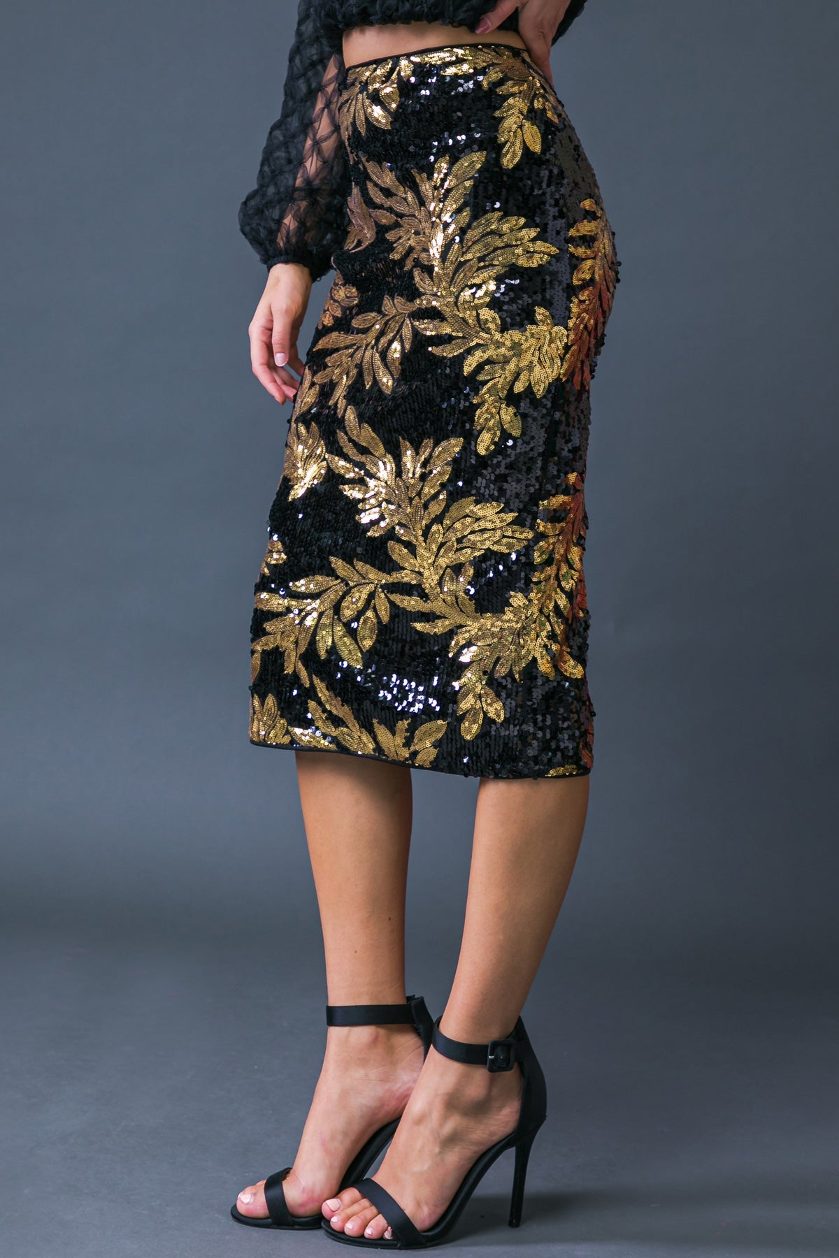 Falda lápiz de lentejuelas con cierre de cremallera en la espalda.