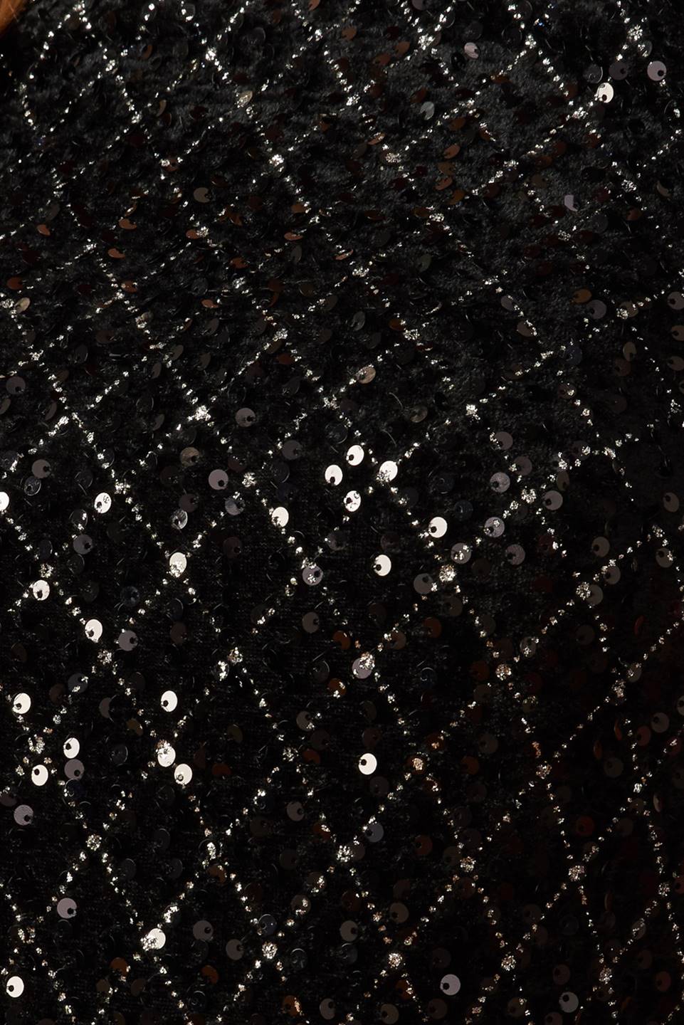Body de lentejuelas con cuello redondo, manga larga y parte inferior de malla con cierre de broche. Pantalón a juego IP8688