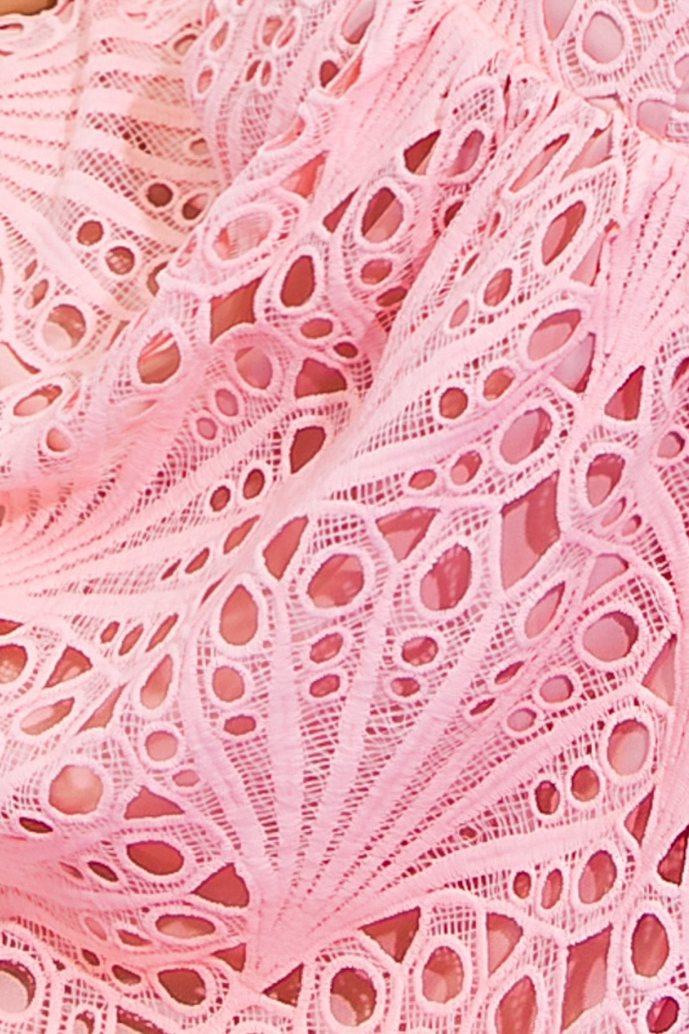 Un minivestido de encaje tejido con escote recto, lazo en el hombro en contraste, bajo festoneado y cierre de cremallera en la espalda.