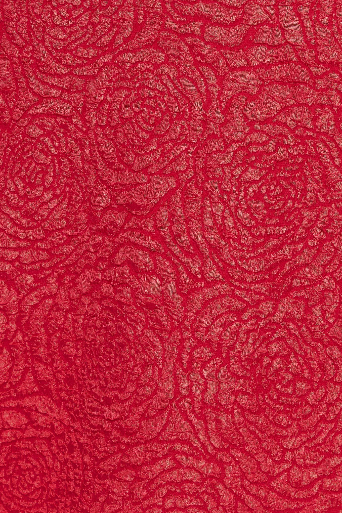 Un minivestido tejido texturizado con escote halter adornado con joyas, doble volante en el bajo y cierre de botón en la nuca.