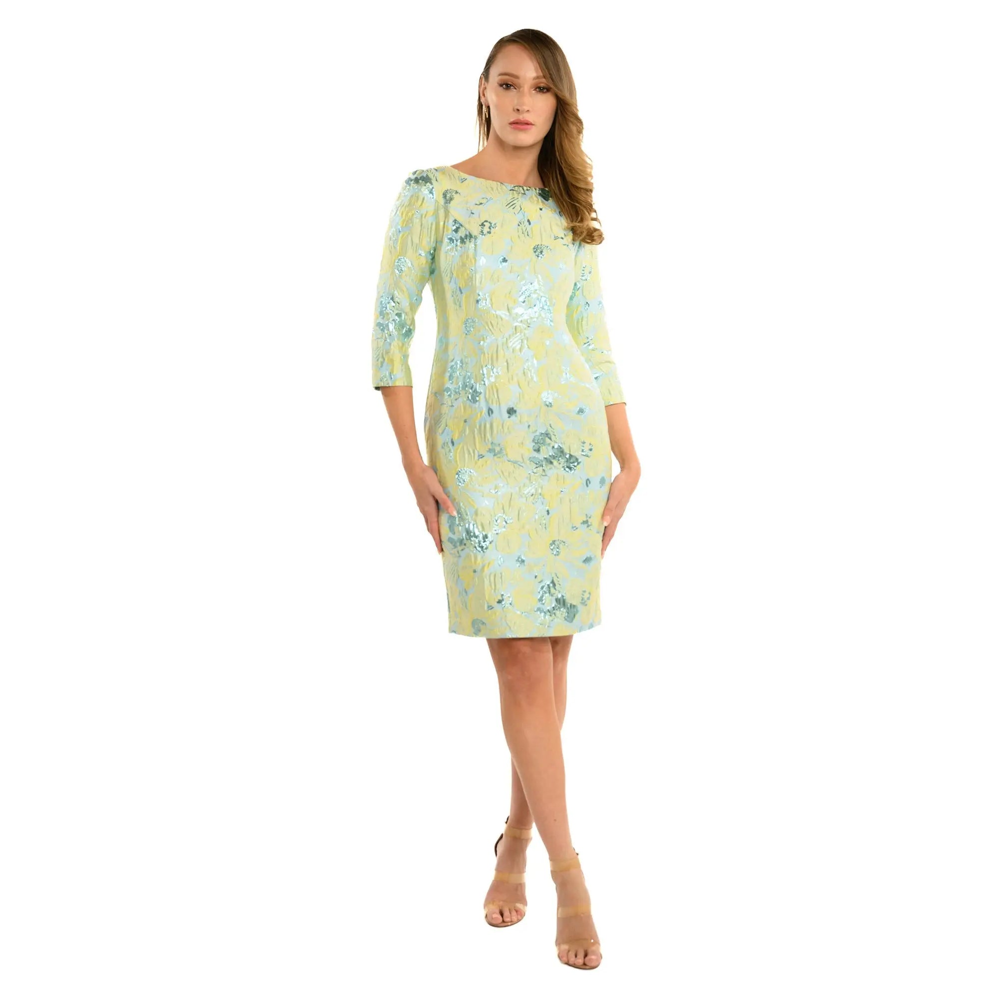 Elige el vestido Isabella. Esta elegante y discreta prenda viene en espectaculares tonos de rosa con dorado, lavanda y plata, o verde y azul. Con tantos tonos disponibles, puedes crear cualquier estilo. Y al lucir su tejido jacquard único, sentirás serenidad y comodidad. Su intrincado diseño, mangas tres cuartos y corte ajustado le dan un toque regio. Ponte este vestido y deja fluir tu elegancia natural.