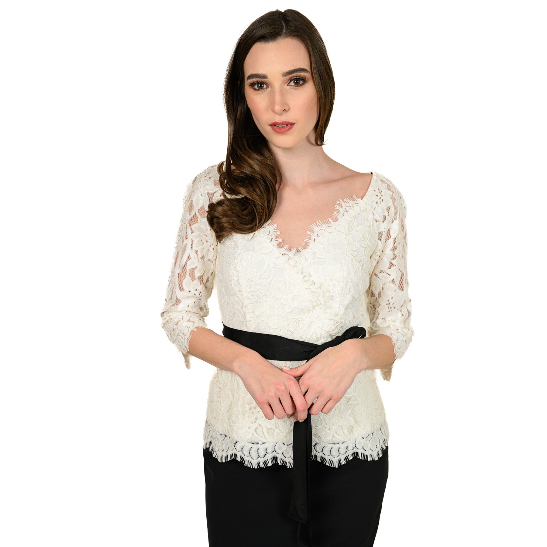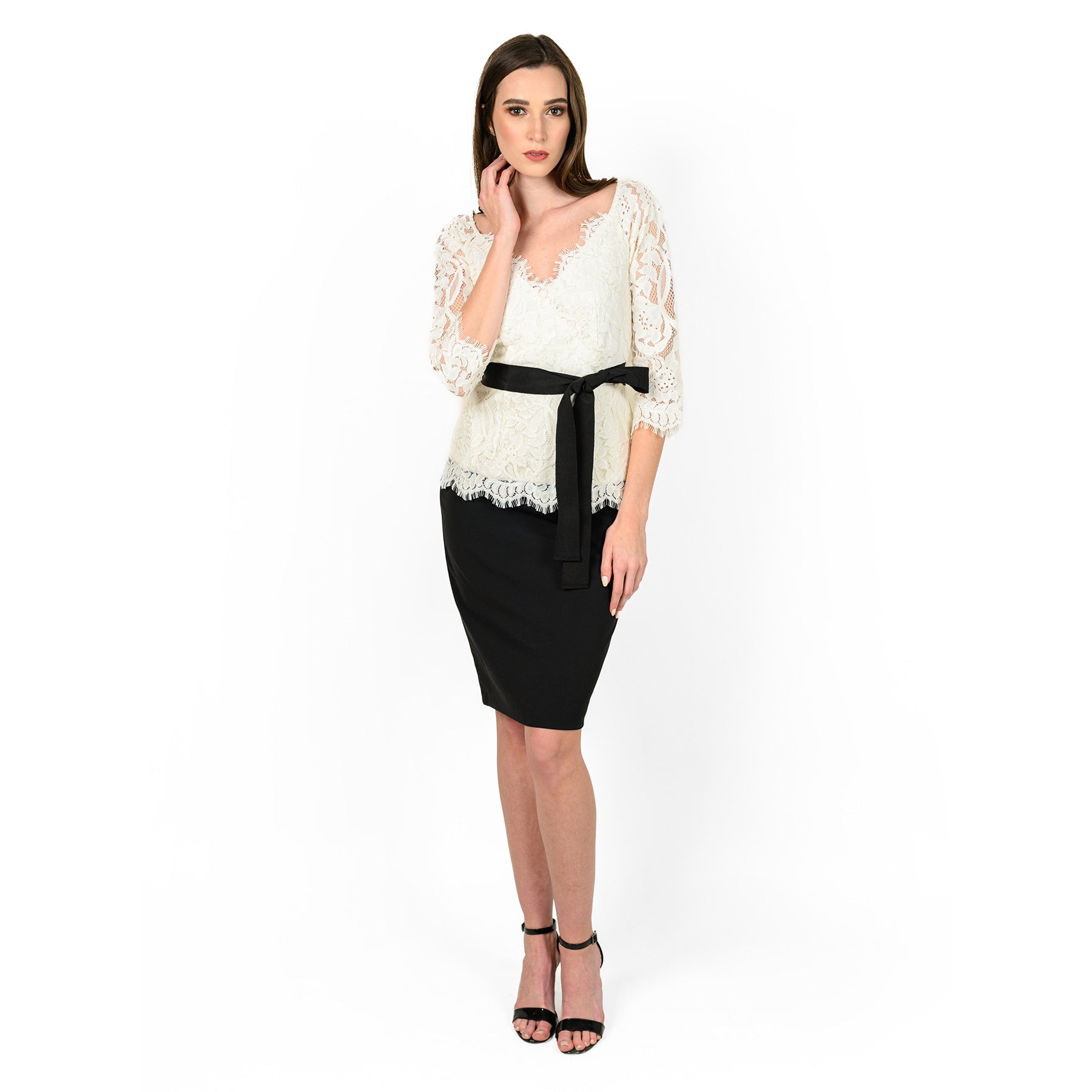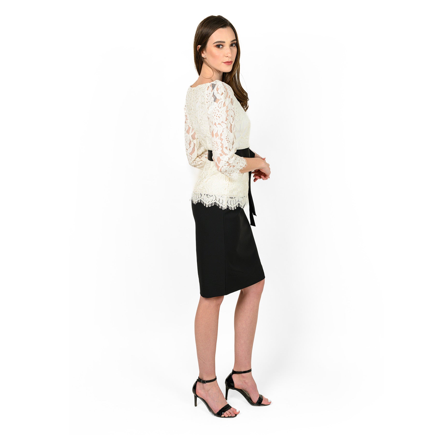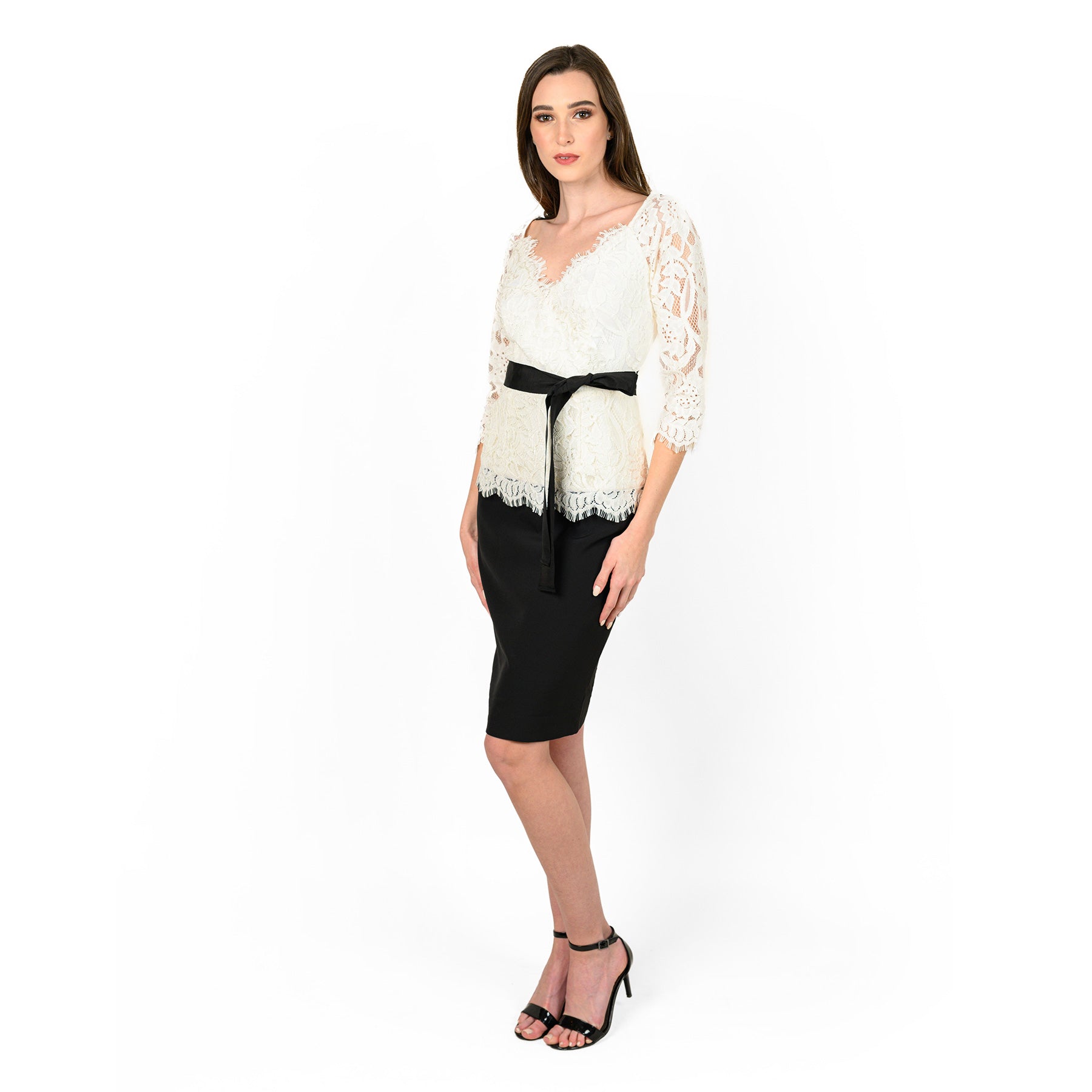 El encaje, que no pasa desapercibido, aporta un toque moderno a un estilo tradicional. Las mangas y el escote que dejan la piel al descubierto crean una armonía perfecta entre elegancia y pulcritud.
