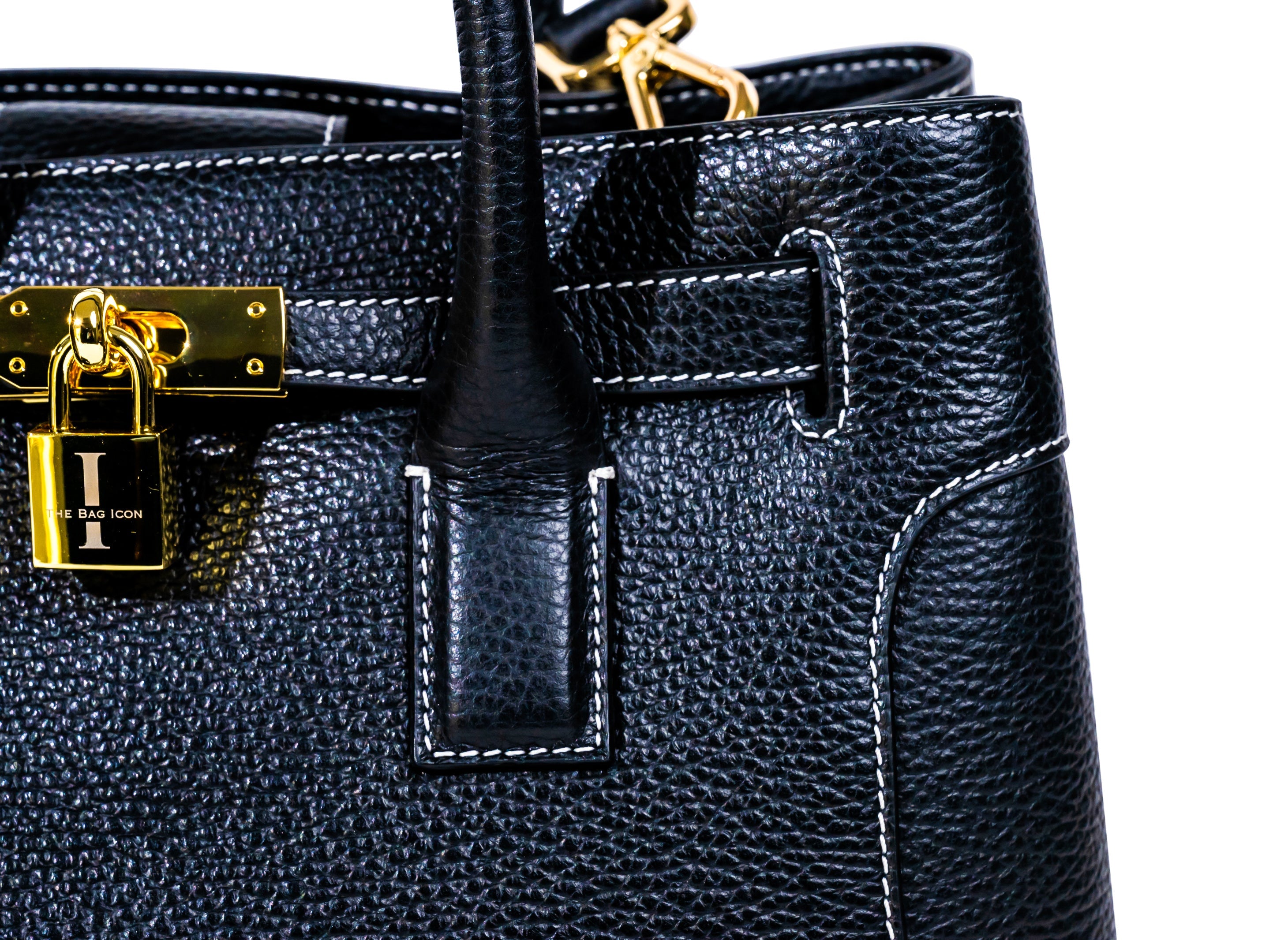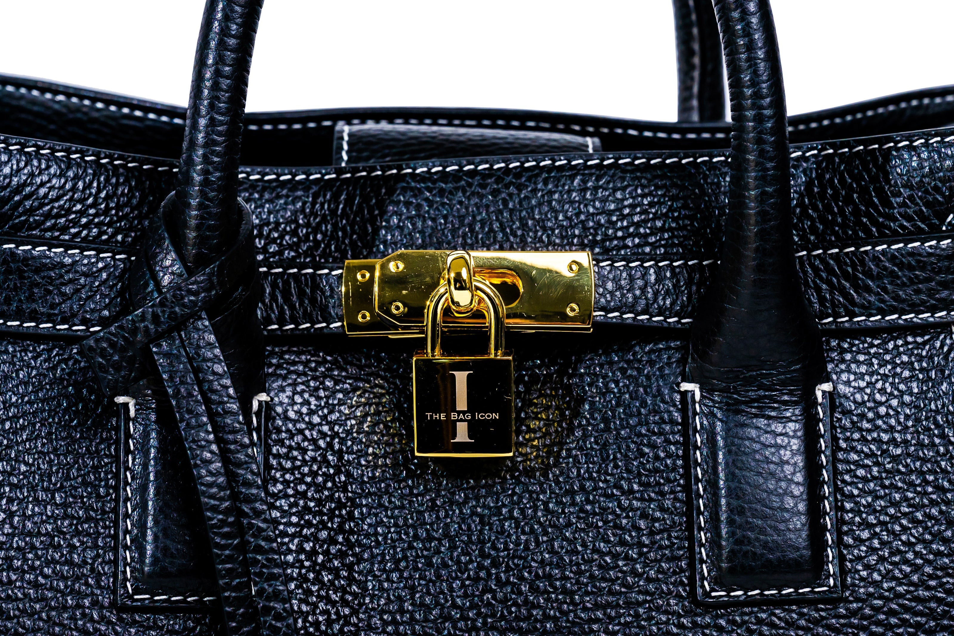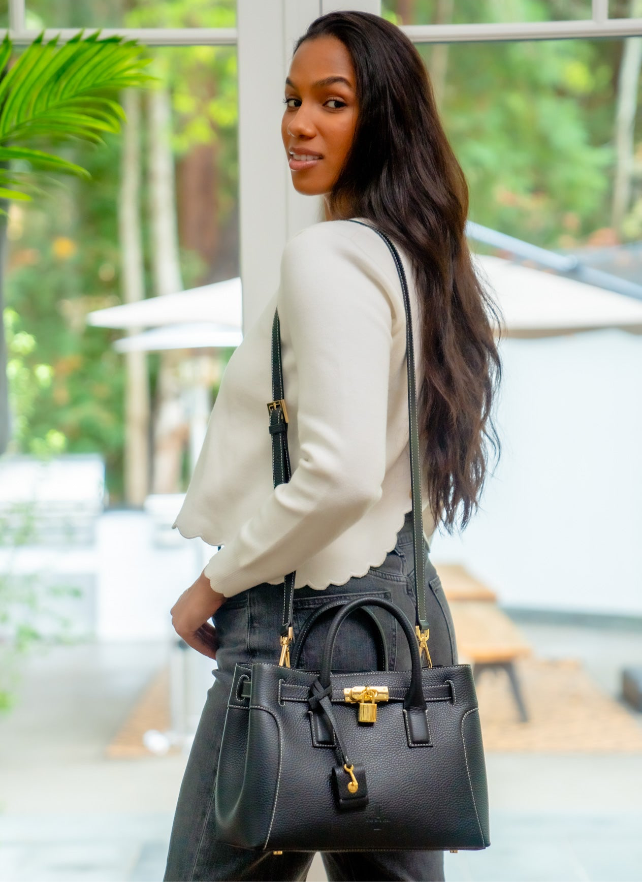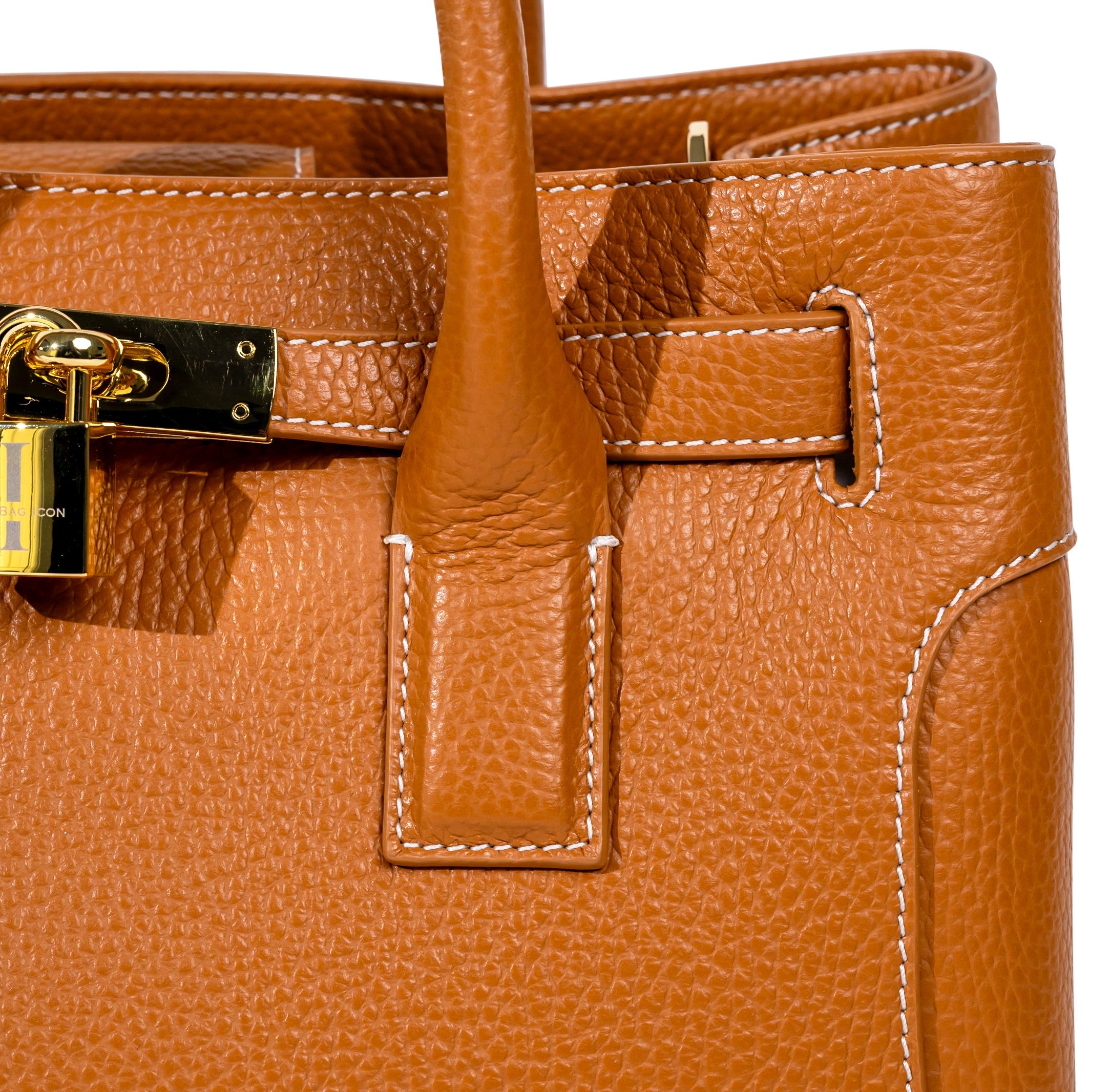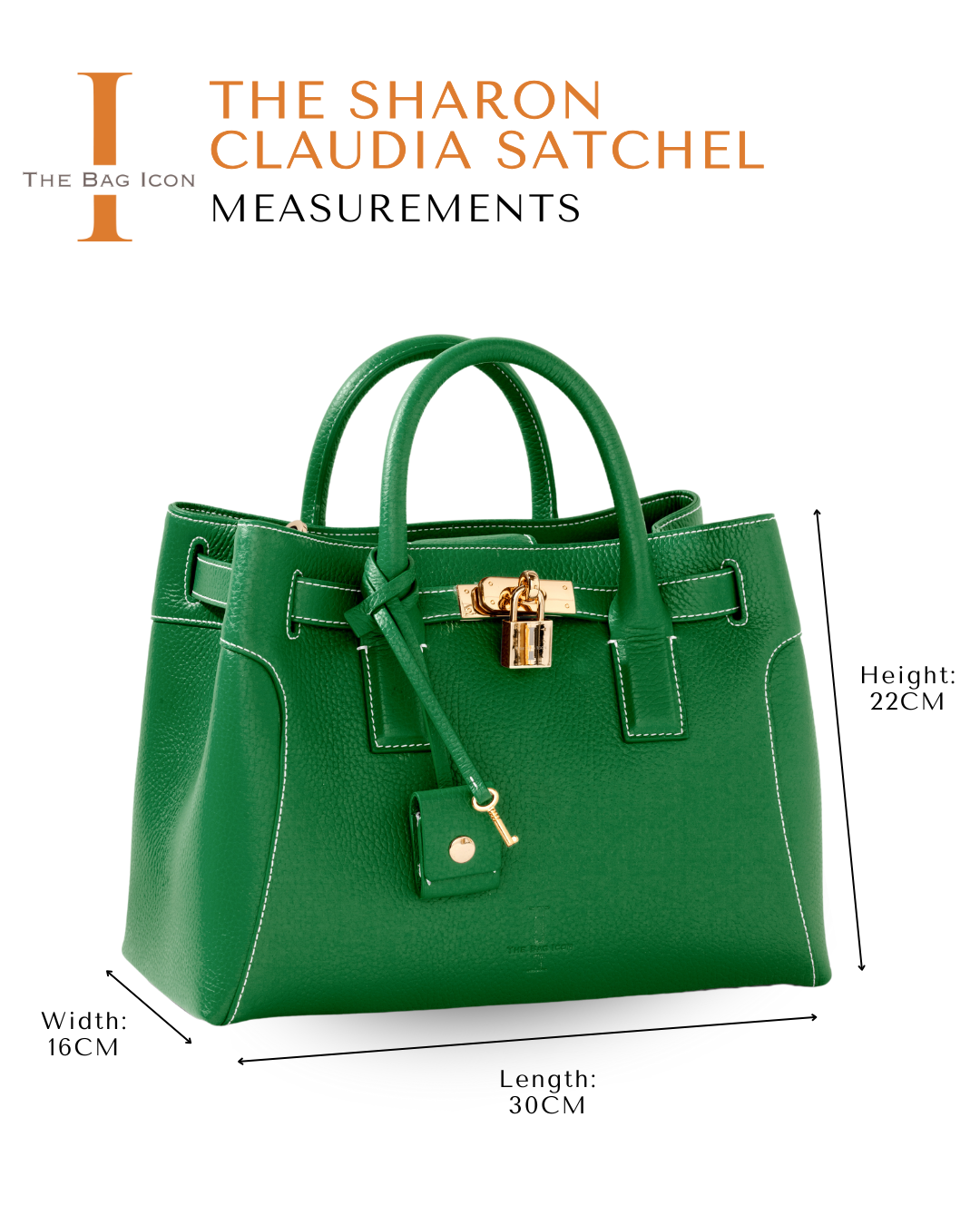 Este bolso tan especial fue diseñado en honor a la difunta madre de la dueña, SHARON CLAUDIA . Hecho a mano en Italia, este clásico bolso tote irradia sofisticación y presenta una suave pero resistente piel granulada de grano completo y llamativos herrajes dorados.