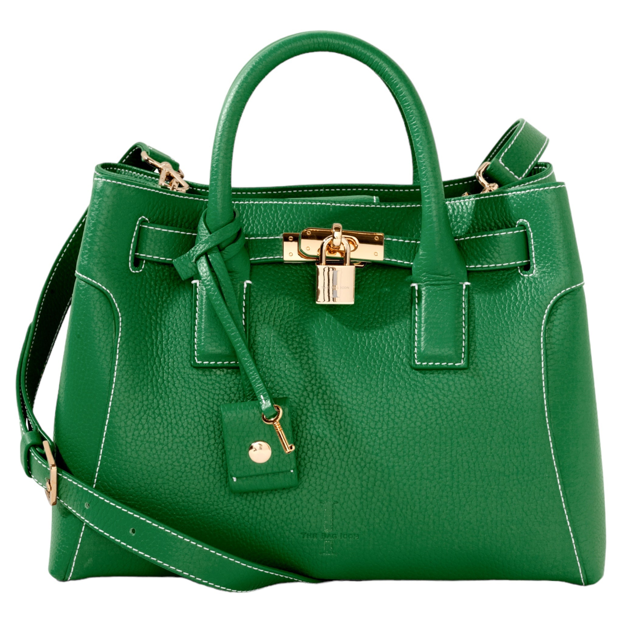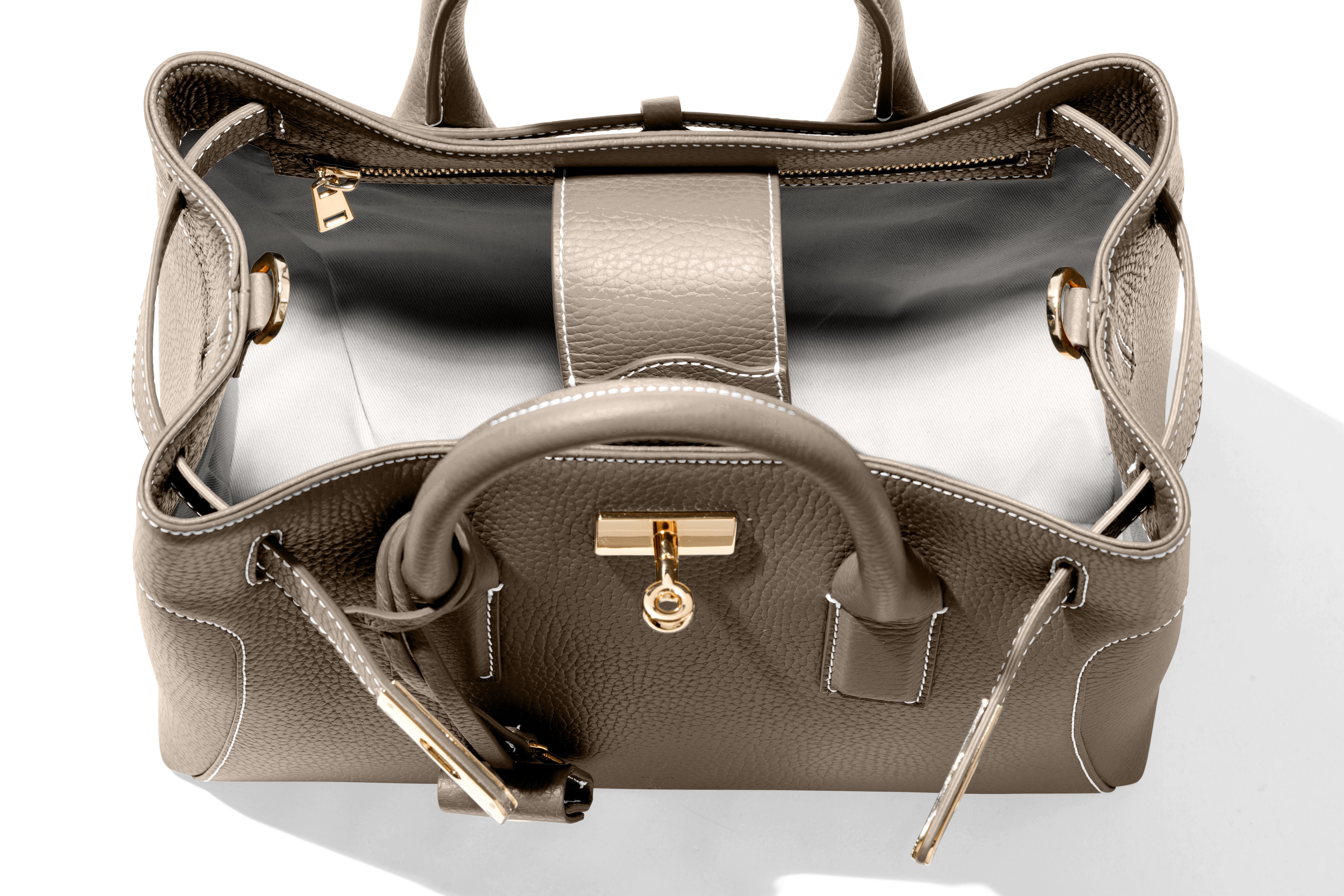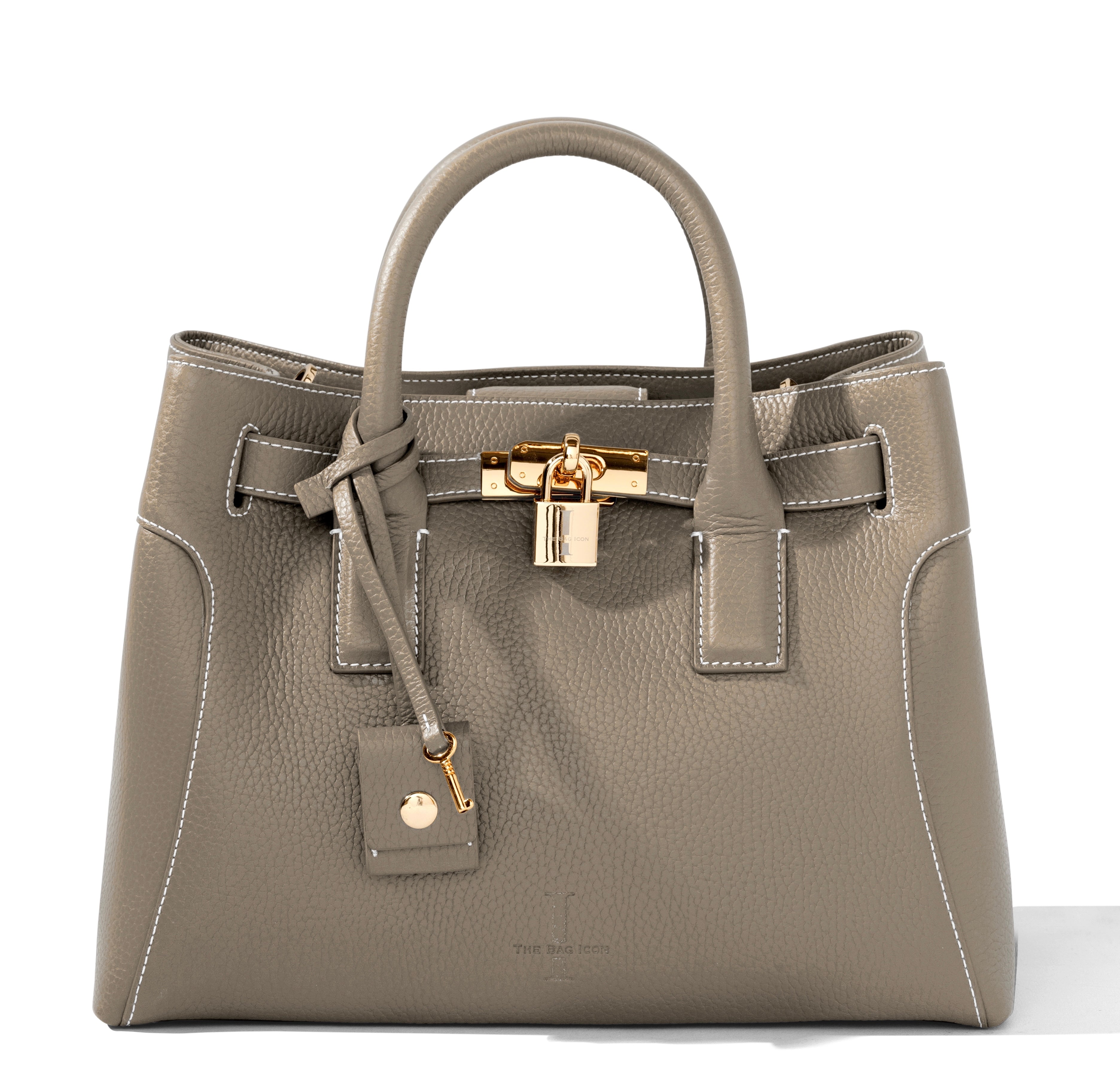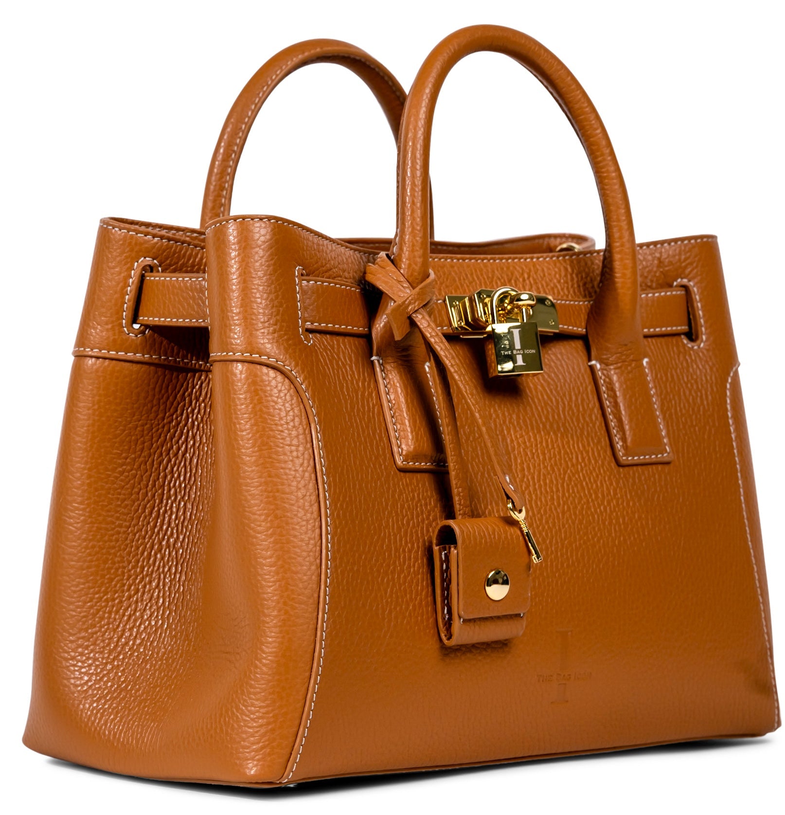 Este bolso tan especial fue diseñado en honor a la difunta madre de la dueña, SHARON CLAUDIA . Hecho a mano en Italia, este clásico bolso tote irradia sofisticación y presenta una suave pero resistente piel granulada de grano completo y llamativos herrajes dorados.