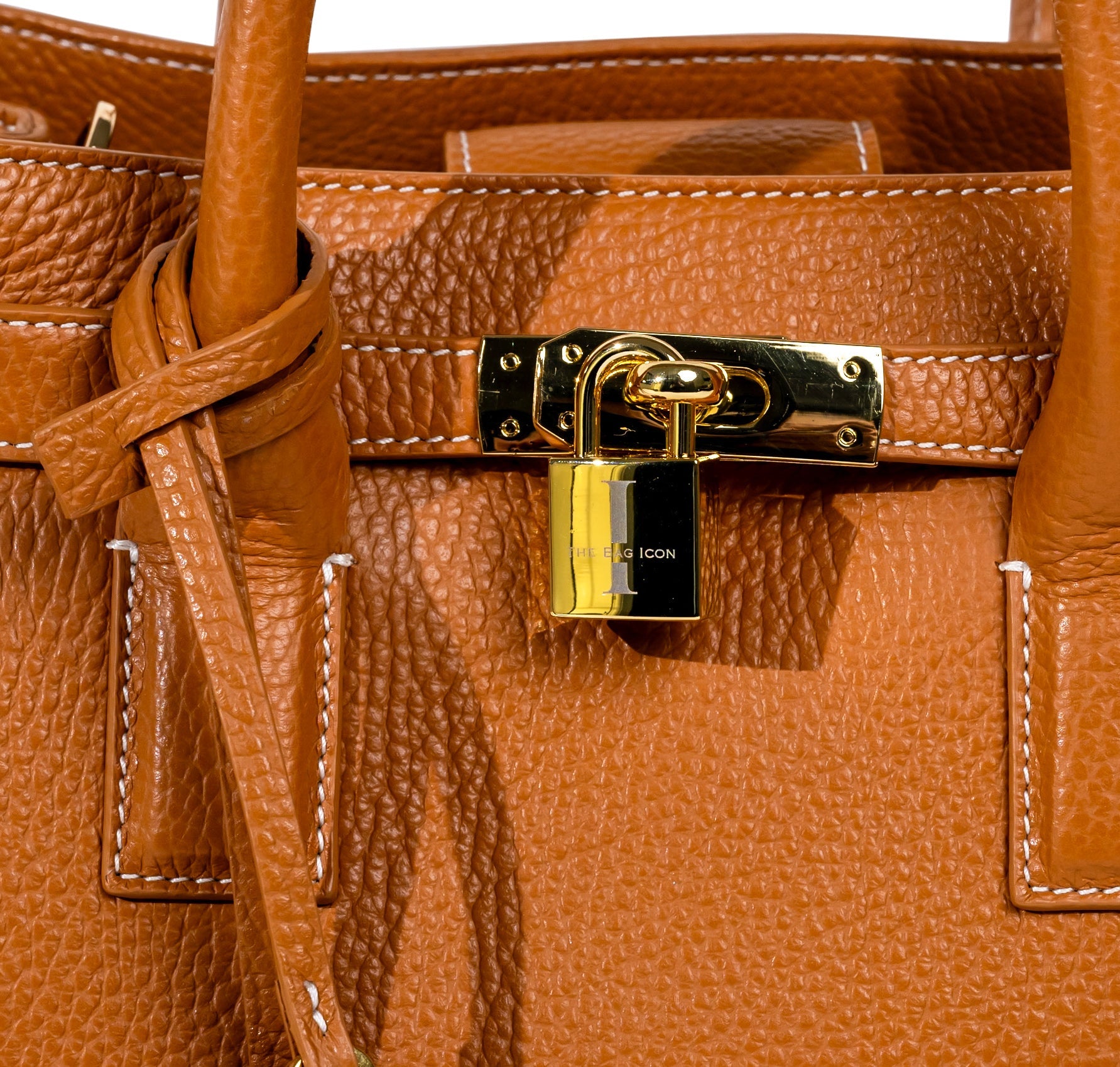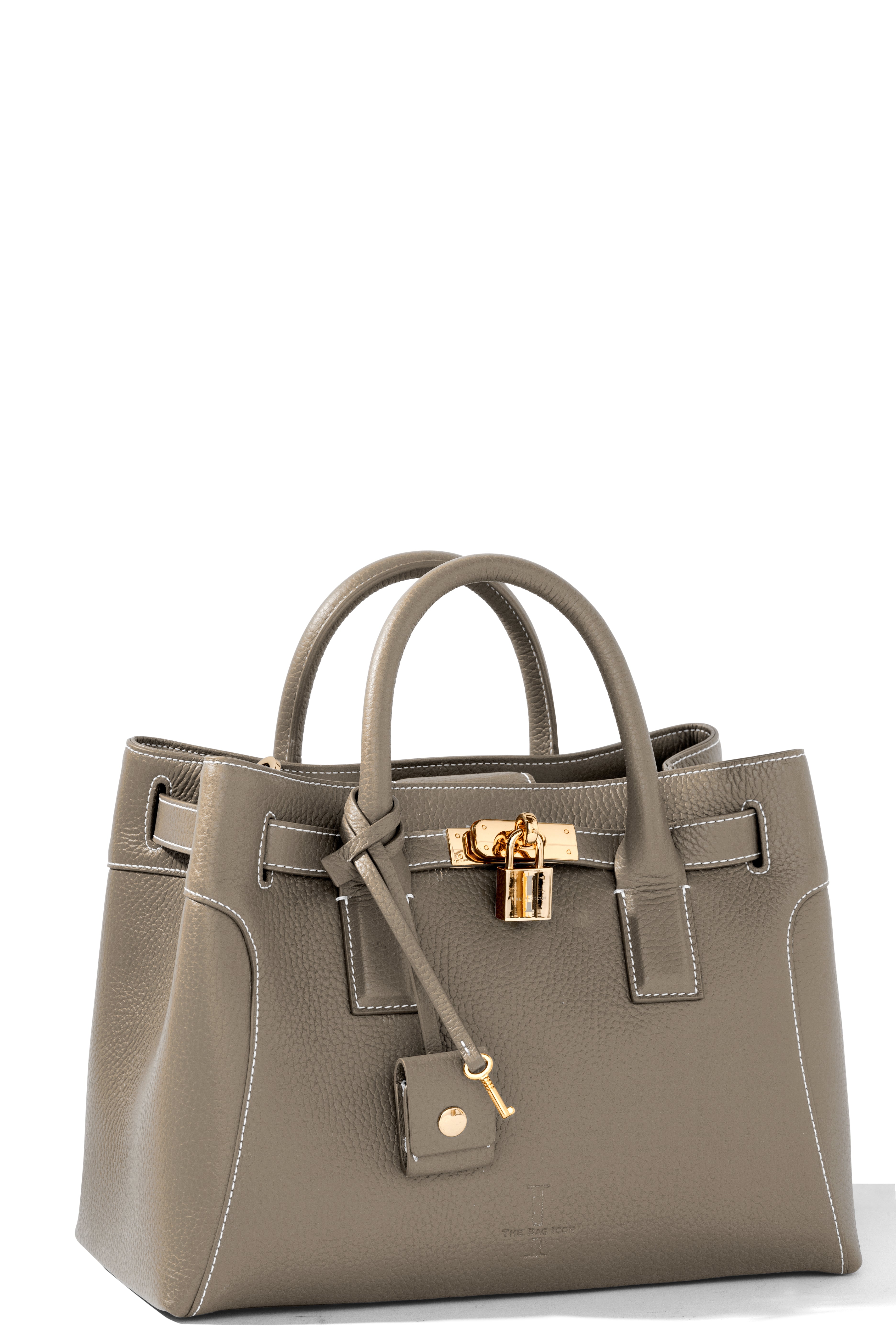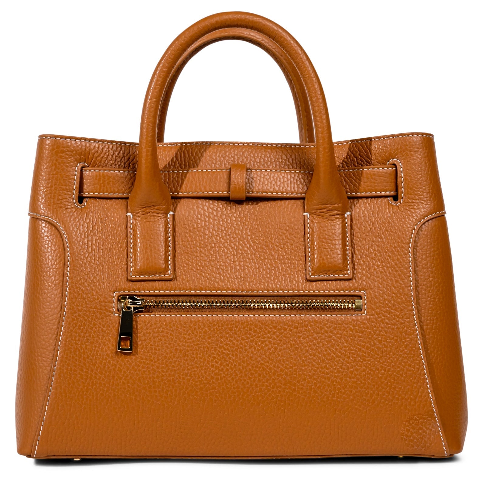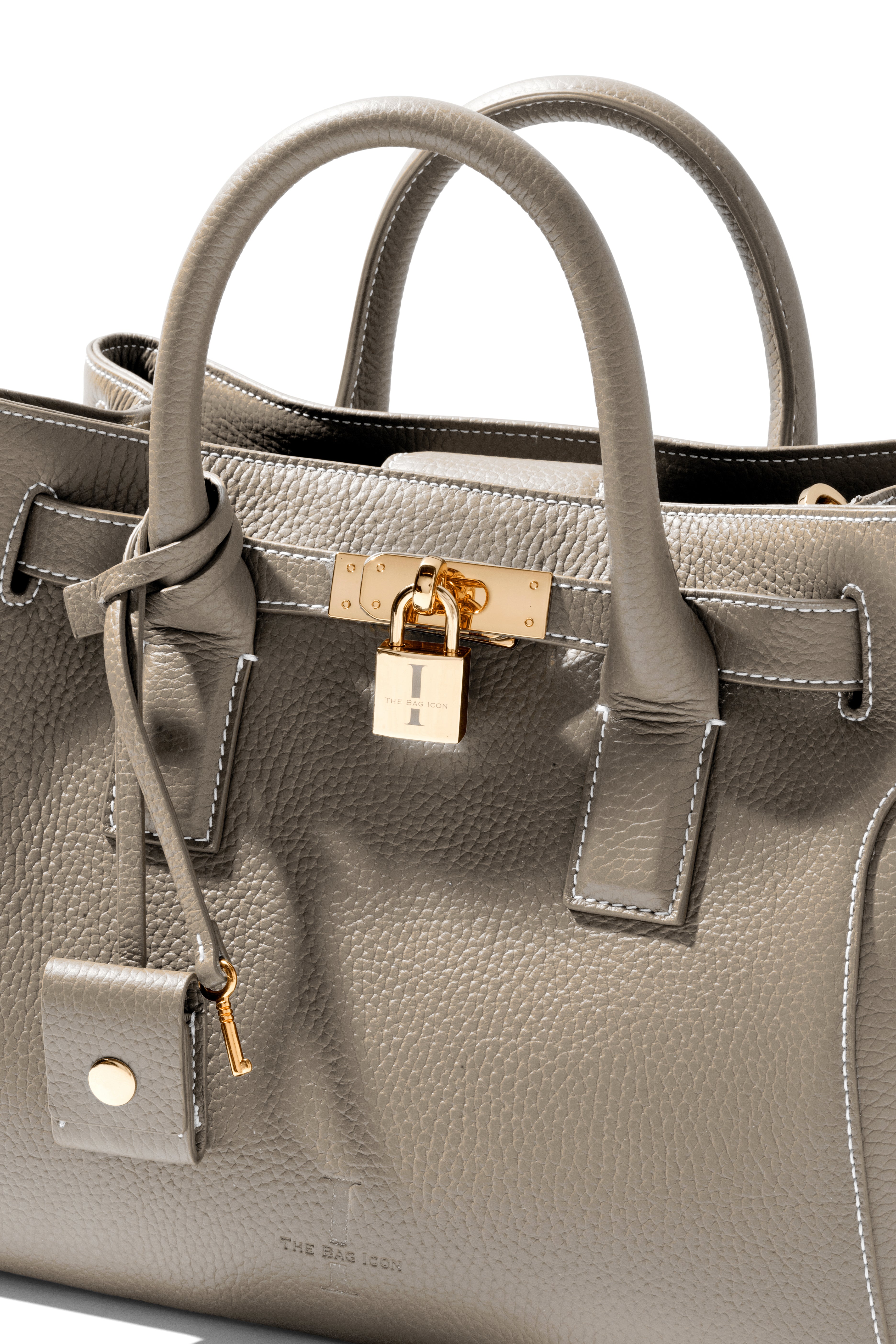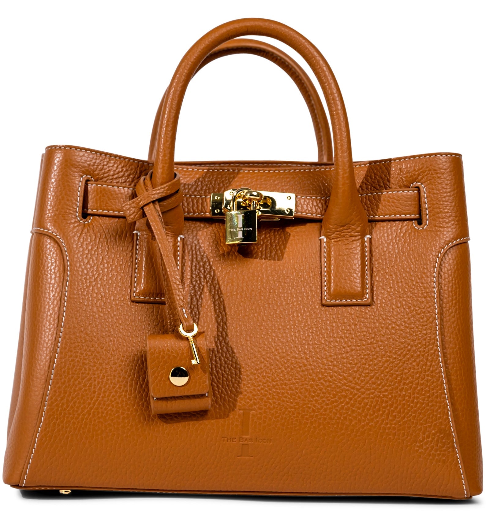 Este bolso tan especial fue diseñado en honor a la difunta madre de la dueña, SHARON CLAUDIA . Hecho a mano en Italia, este clásico bolso tote irradia sofisticación y presenta una suave pero resistente piel granulada de grano completo y llamativos herrajes dorados.