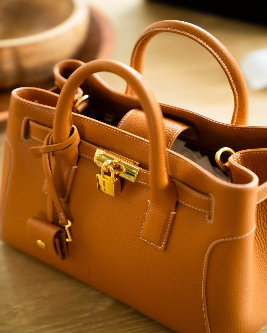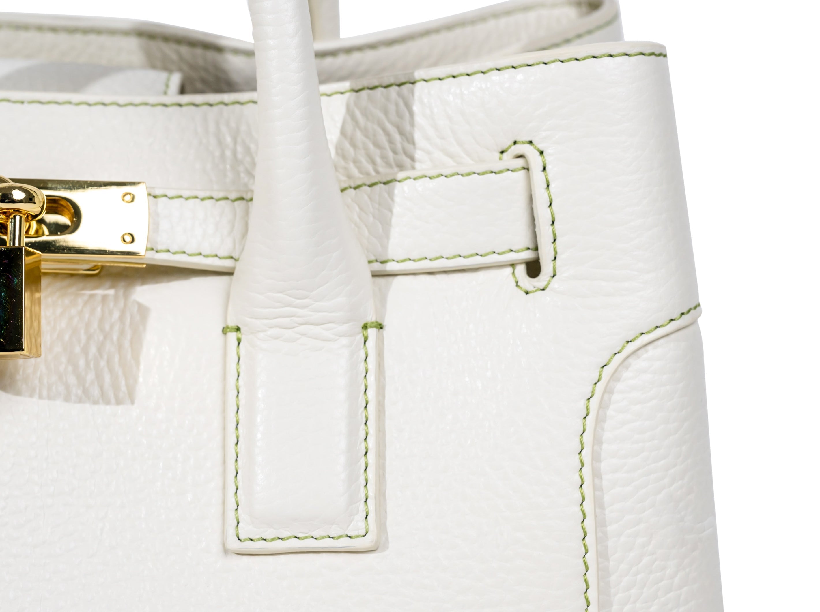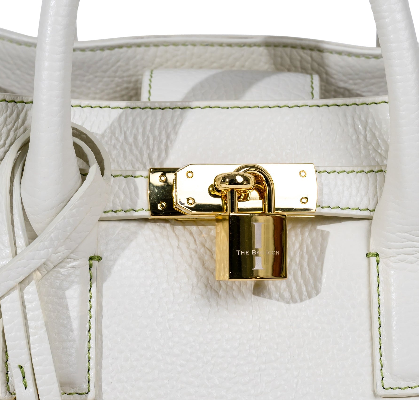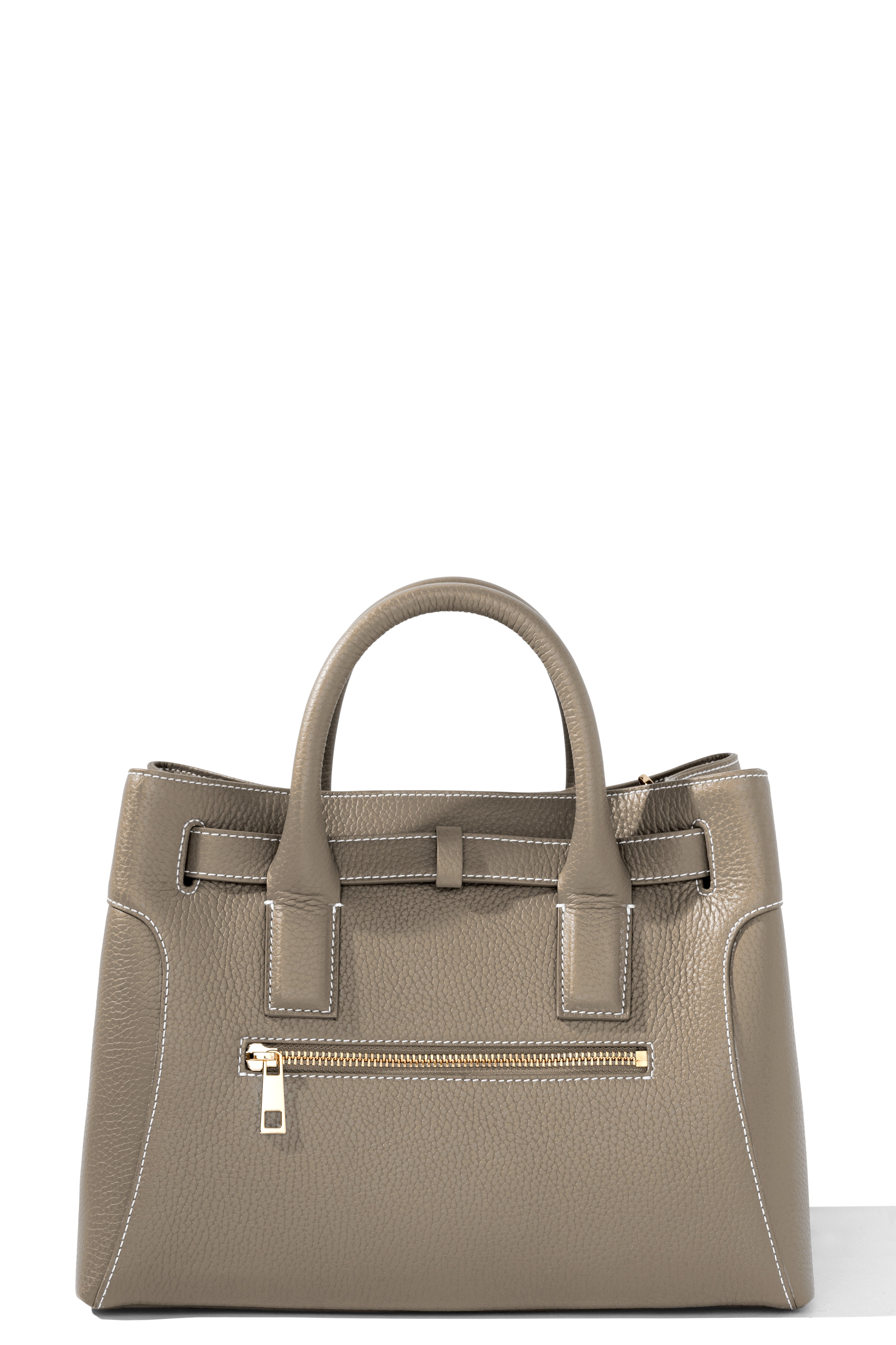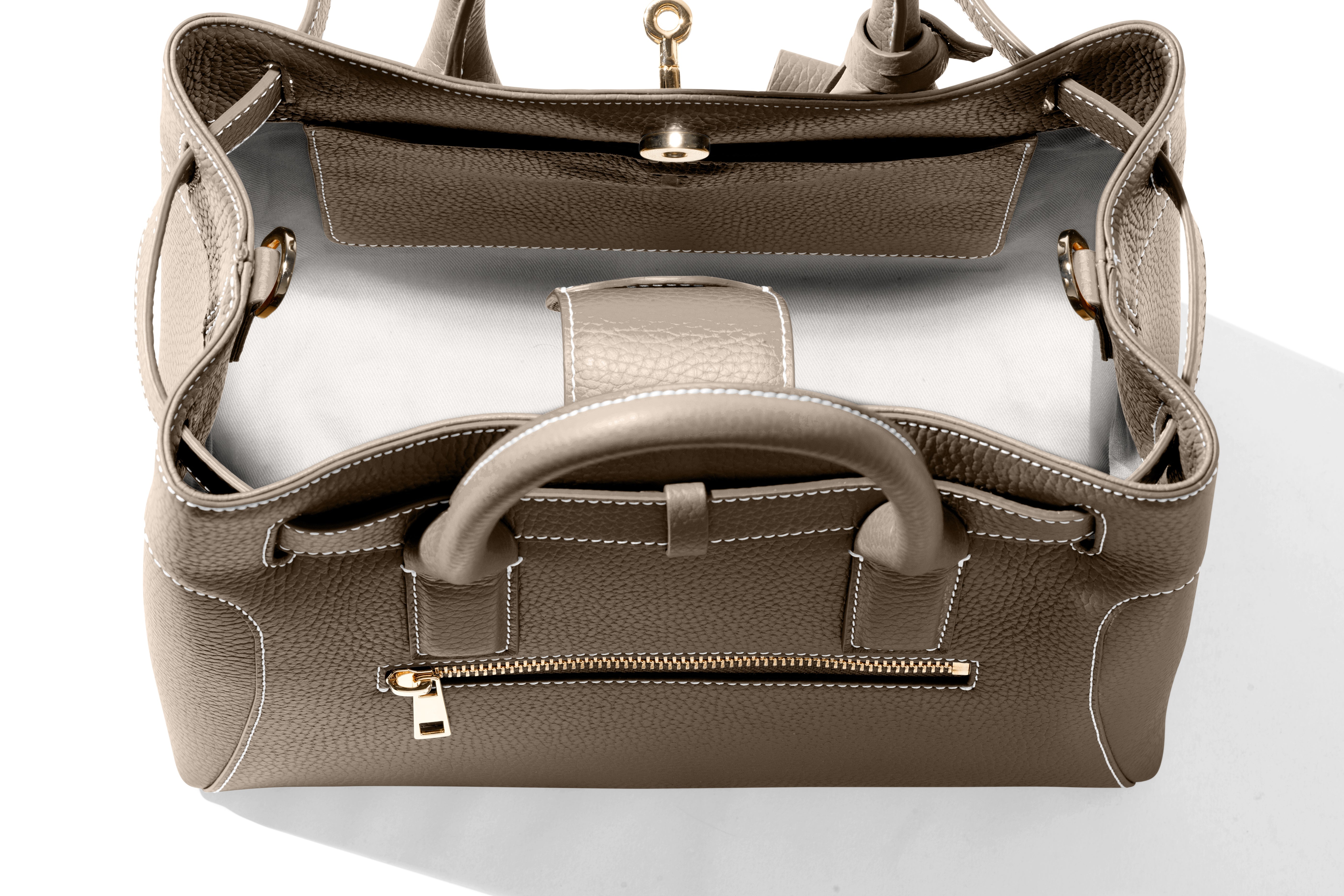 Este bolso tan especial fue diseñado en honor a la difunta madre de la dueña, SHARON CLAUDIA . Hecho a mano en Italia, este clásico bolso tote irradia sofisticación y presenta una suave pero resistente piel granulada de grano completo y llamativos herrajes dorados.
