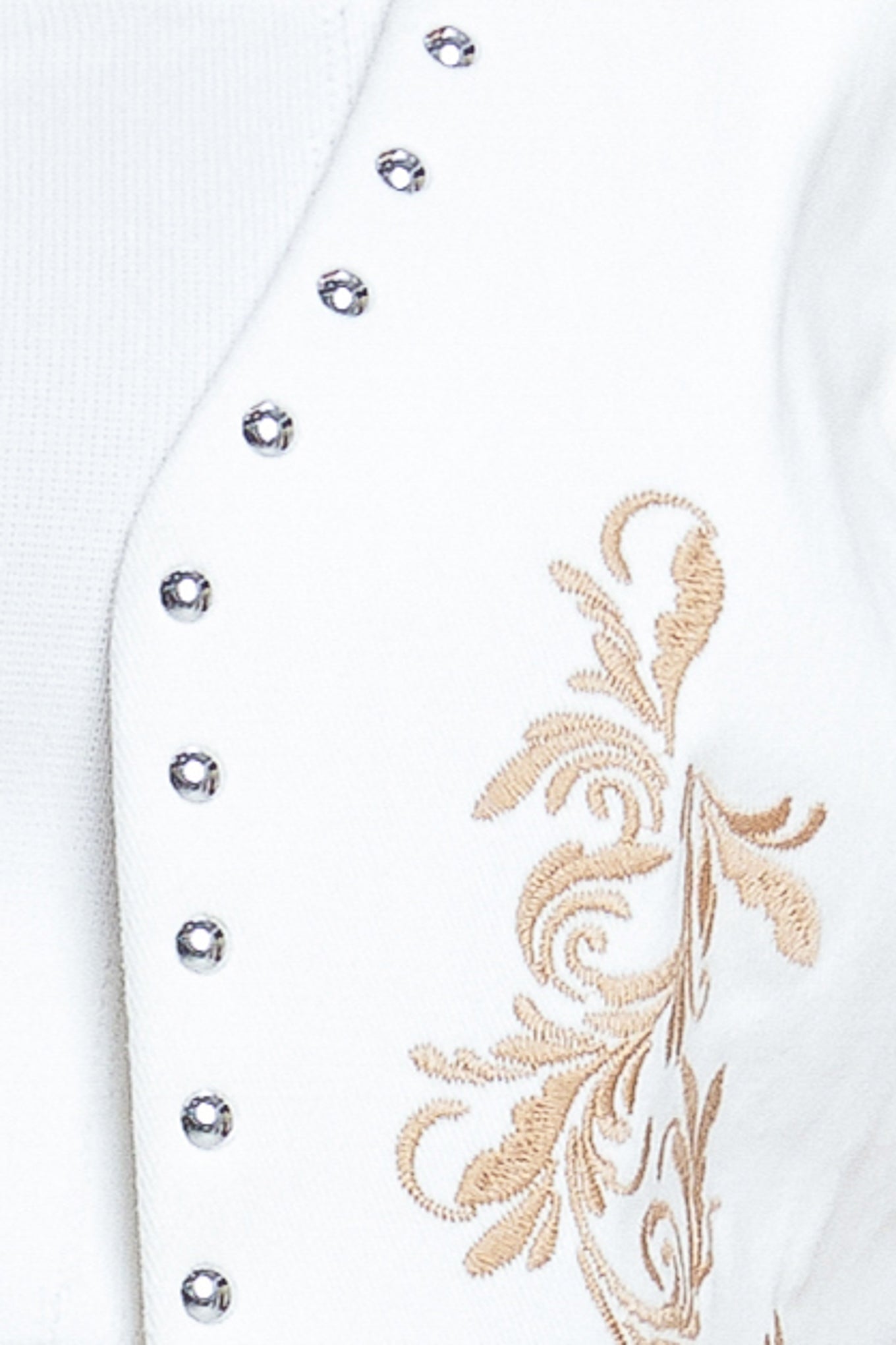 A solid woven vest featuring embroidery, stud embellishment and open front. Matching skort IP9121T