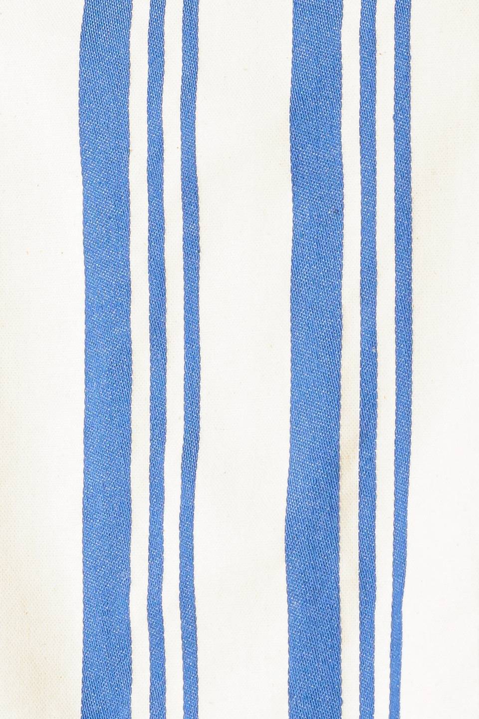 A blue and ivory striped printed woven top and short set. Top featuring round neckline, sleeveless and back tie. Short with side zipper closure.