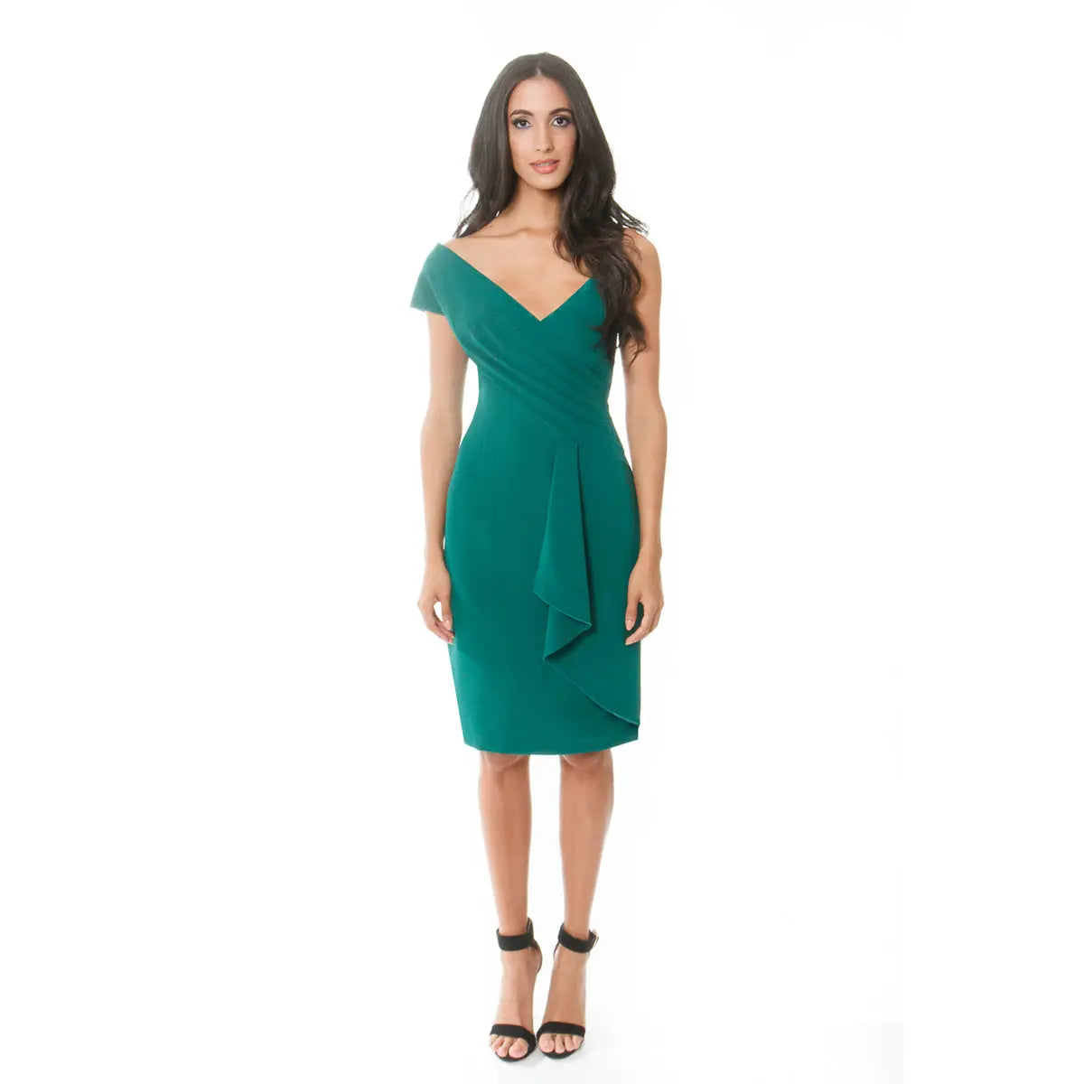 Asymmetric Shoulder Flounced Sheath