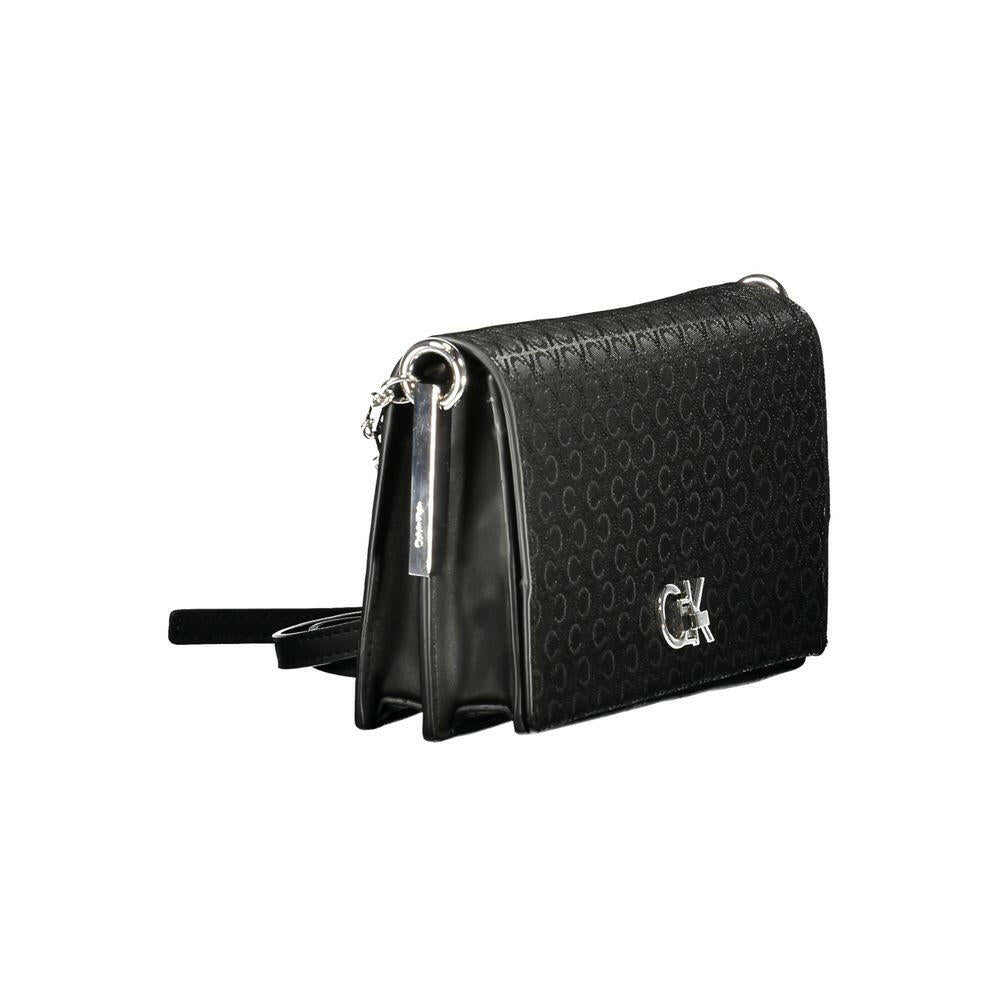 Elevate your accessory game with this chic Calvin Klein shoulder bag. Designed to cater to both style and functionality, it flaunts two spacious compartments, a secure central pocket, and a card-formed pocket for your essentials. The black hue is accented with striking contrasting details and the iconic logo, culminating in an elegant twist closure. Crafted from 50% recycled polyester, this bag marries luxury with sustainability.