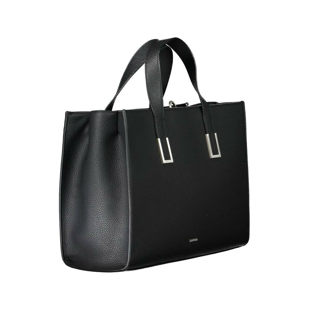 Elevate your accessory game with this Calvin Klein masterpiece, where eco-conscious luxury meets functional elegance. This black handbag boasts a sophisticated design with two handles, an adjustable and removable shoulder strap, allowing for versatility in carry. Inside, two compartments and a central pocket paired with a document holder ensure your essentials are organized and secure. Accented with eye-catching contrasting details and proudly displaying the Calvin Klein logo, this bag is crafted from 100% recycled polyester, a statement of both style and sustainability.