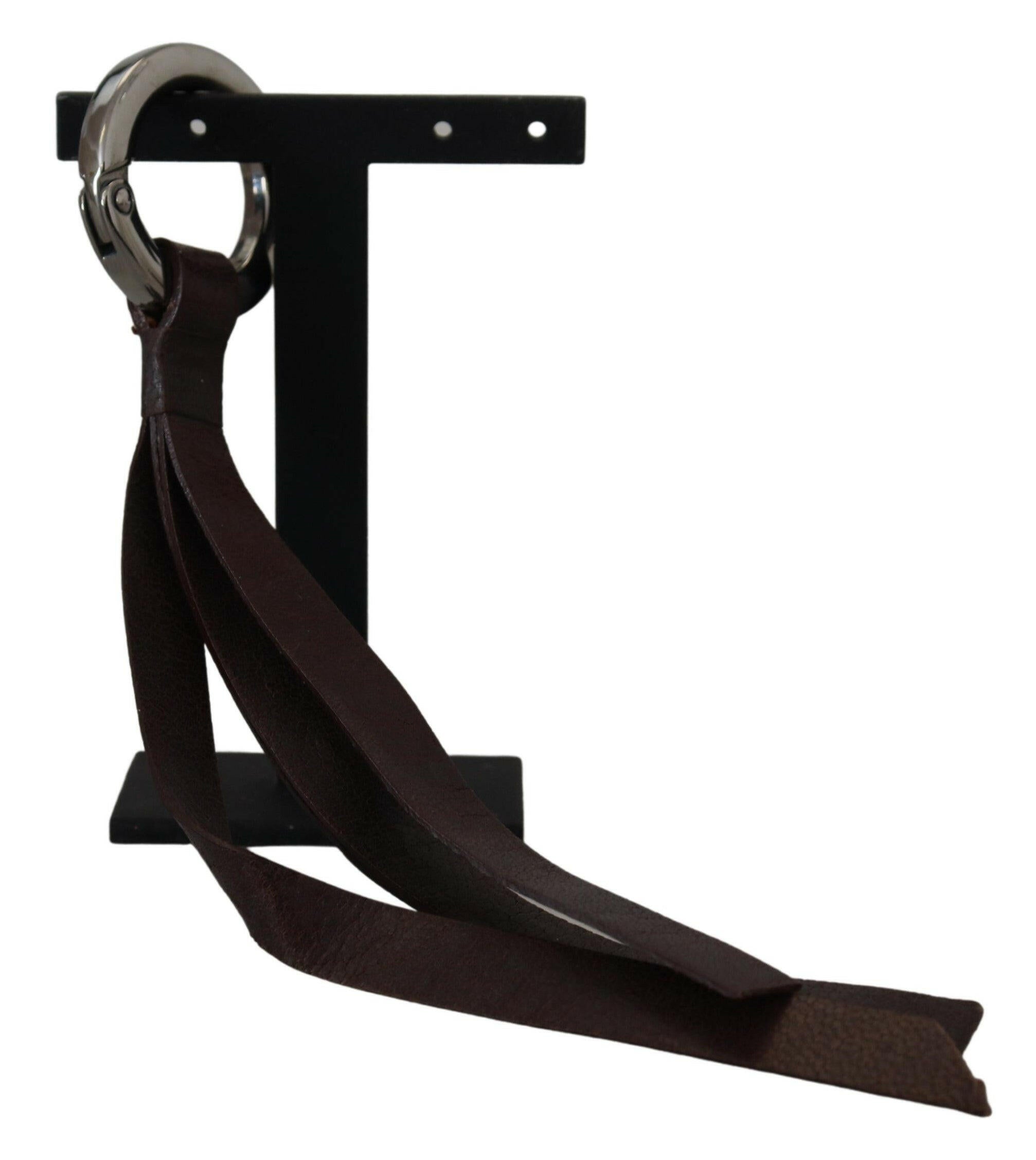 Costume National Brown Leather Silver Tone Metal Keyring Keychain