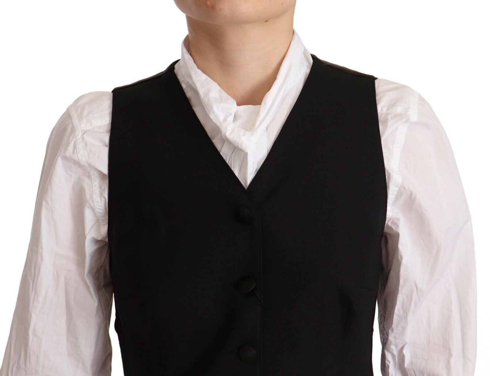 Dolce & Gabbana Black Button Down Sleeveless Vest Viscose Top