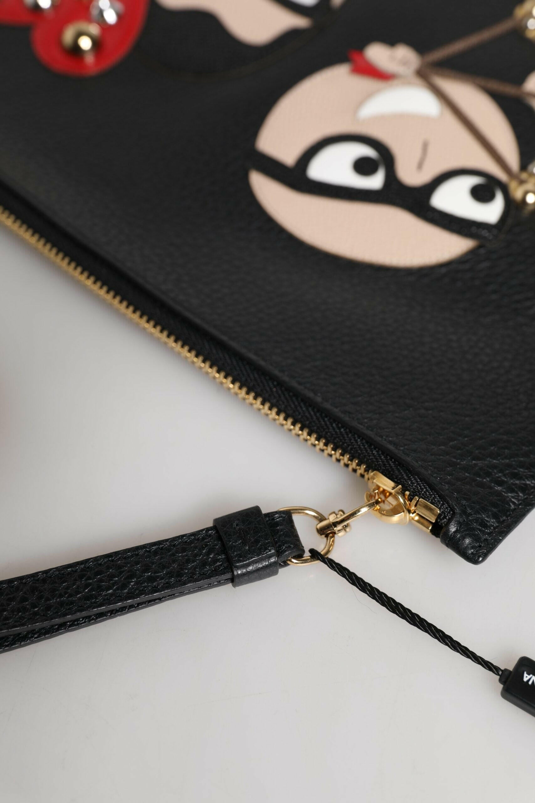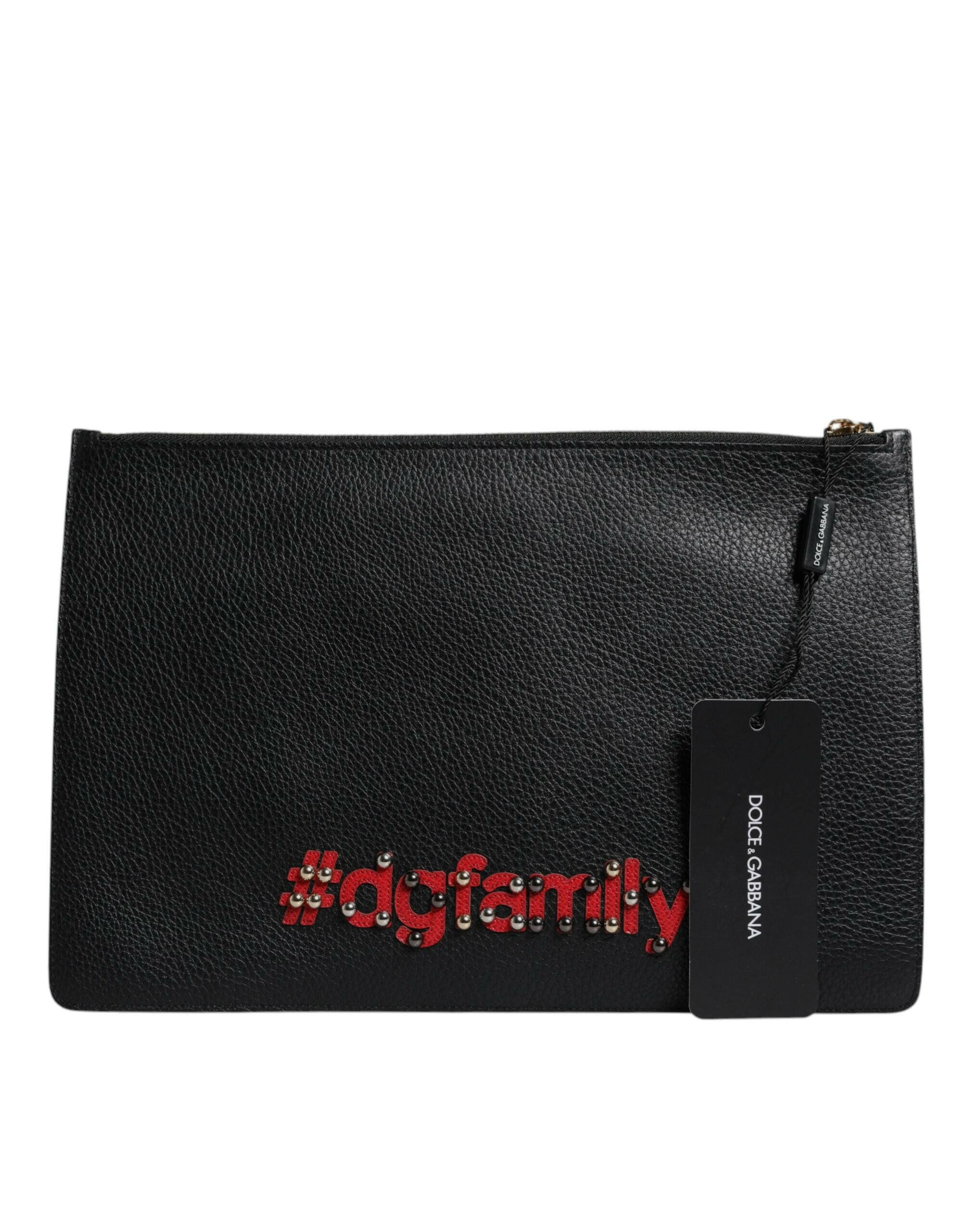 Dolce & Gabbana Black #DGFamily Embellished Leather Clutch Bag