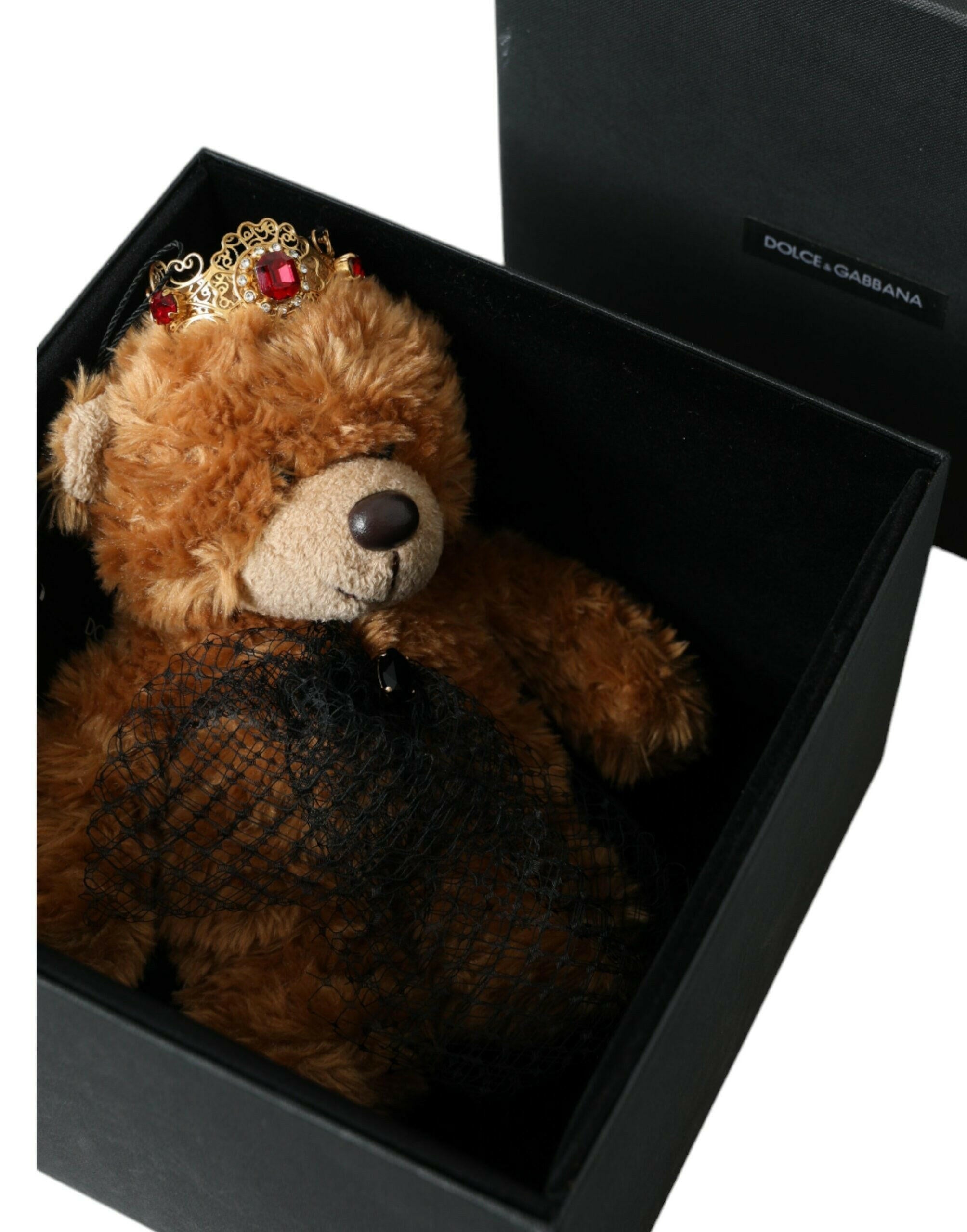 Dolce & Gabbana Brown Teddy Bear Gold Crystal Crown Hair Band Diadem