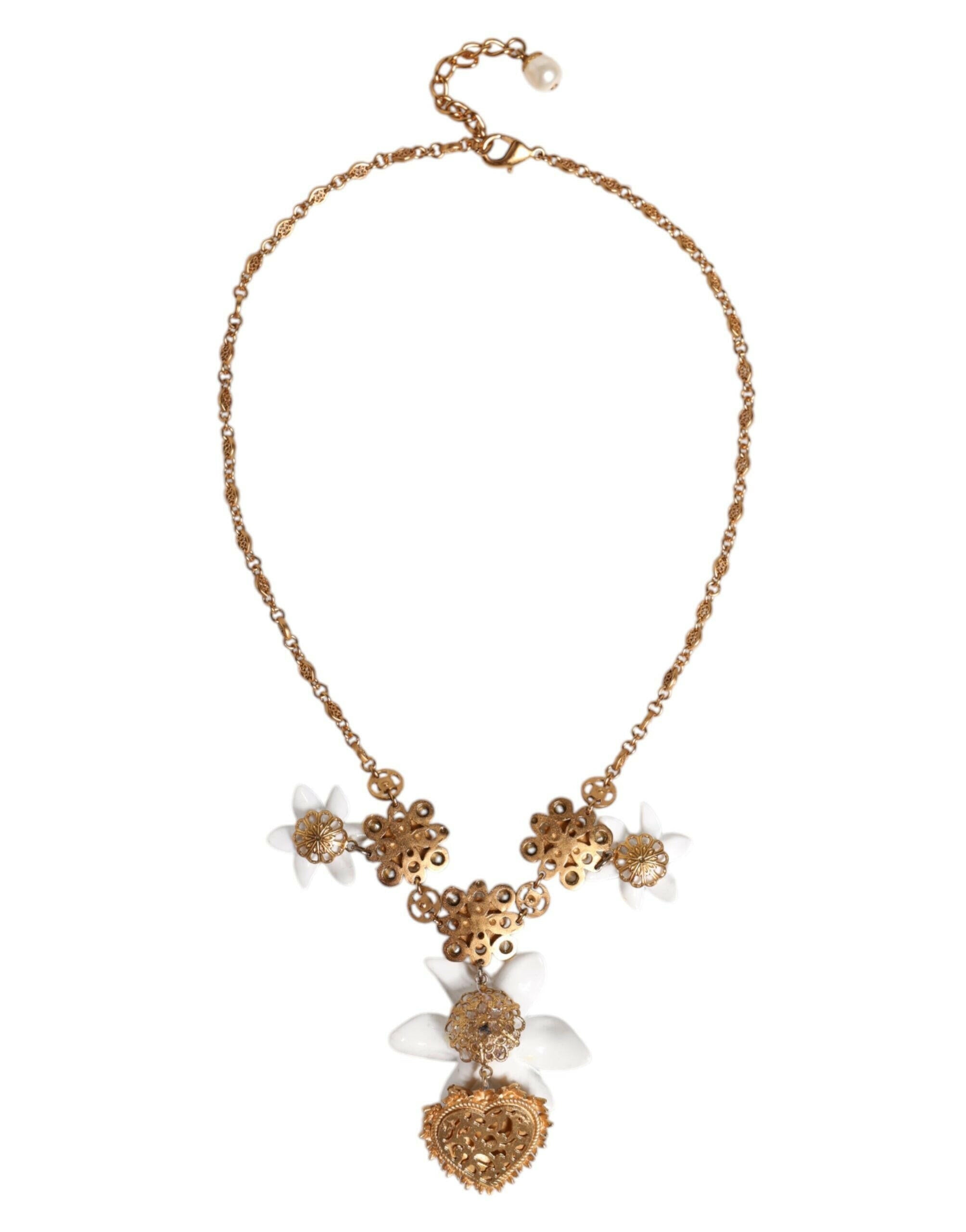 Dolce & Gabbana Gold Brass Lily Crystal Sacred Heart Pendant Necklace