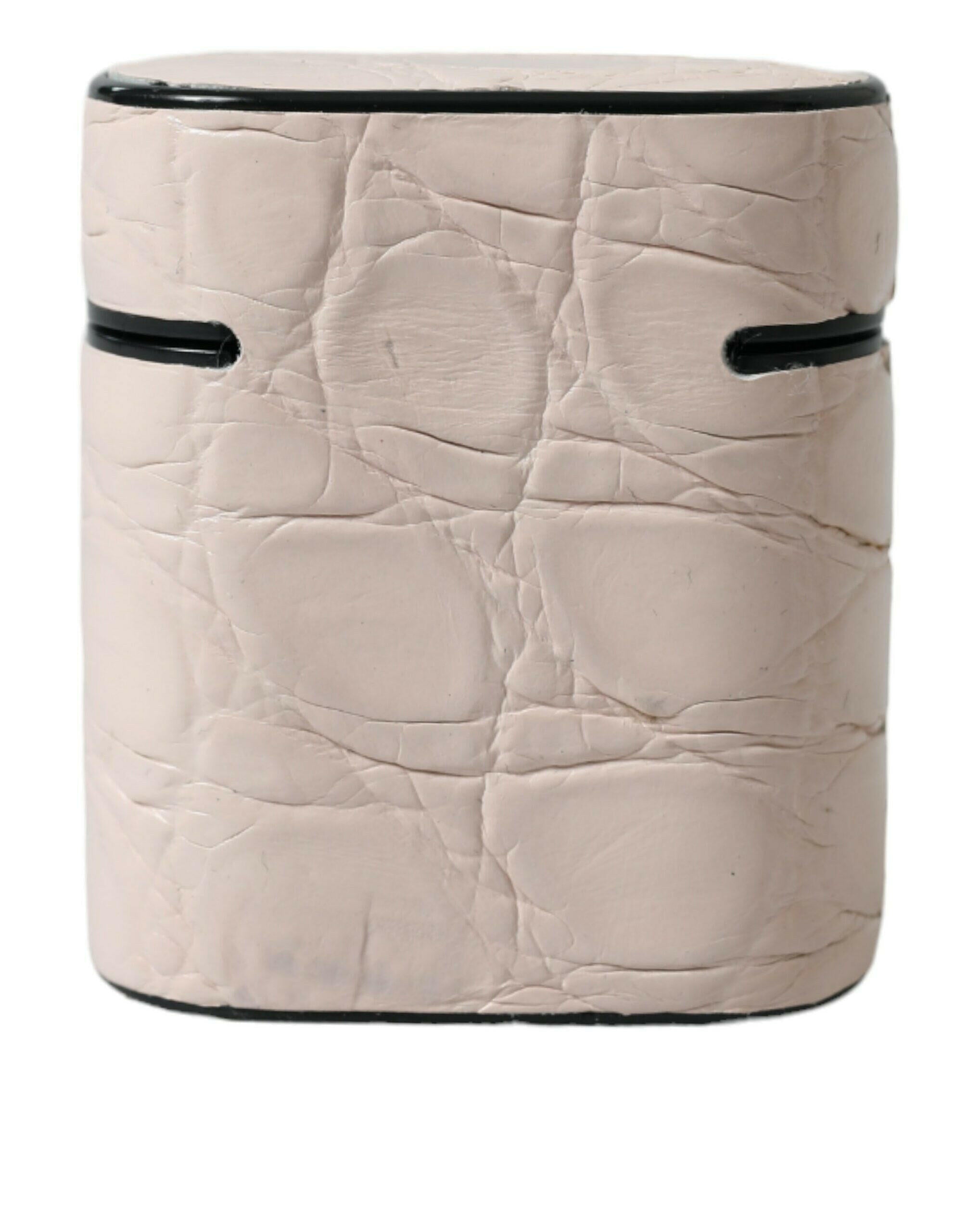 Dolce & Gabbana Light Pink Calf Leather Metal Logo Plaque Airpods Case