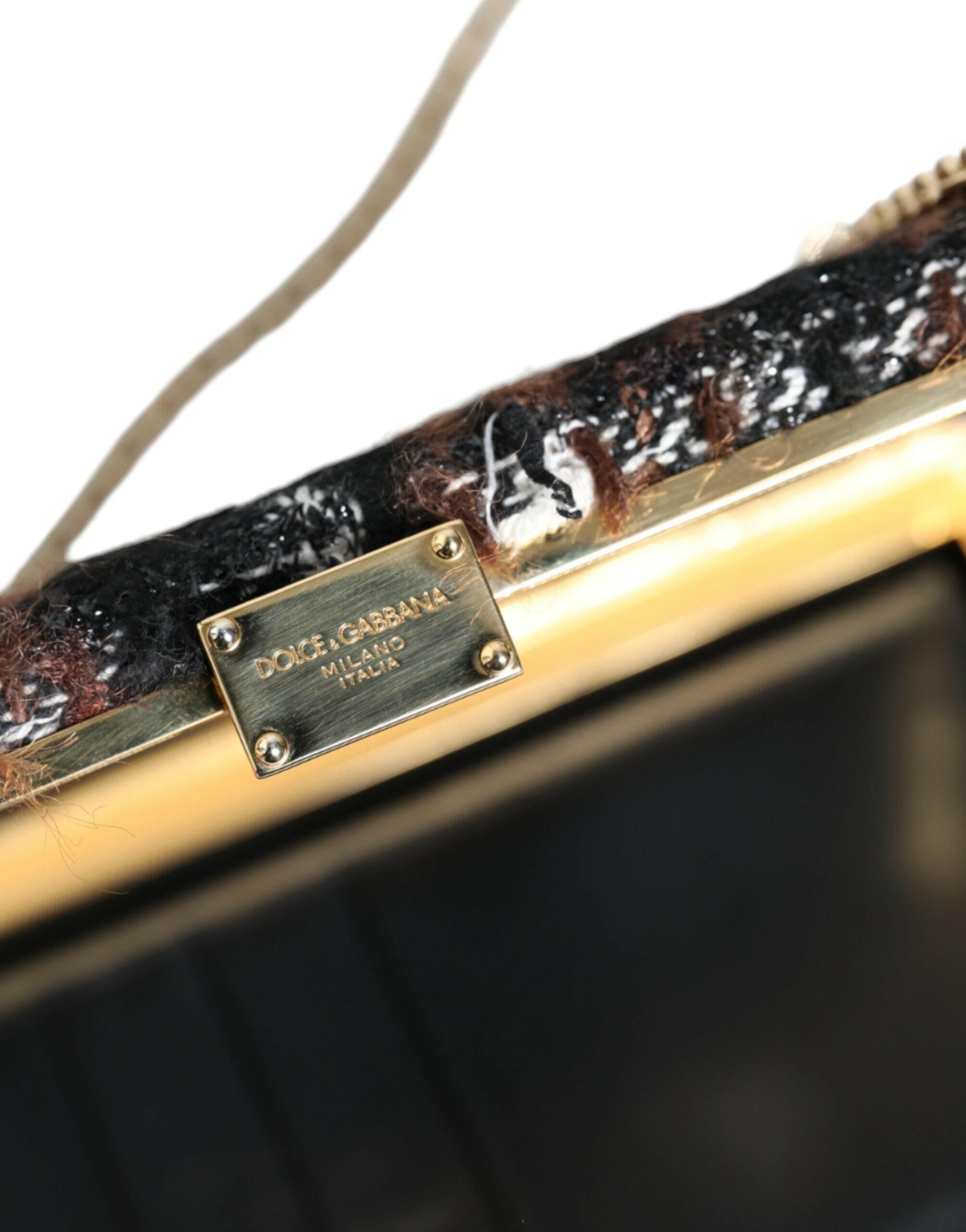 Dolce & Gabbana Multicolor Tweed Floral Clutch Evening Party Purse CrossBody Bag