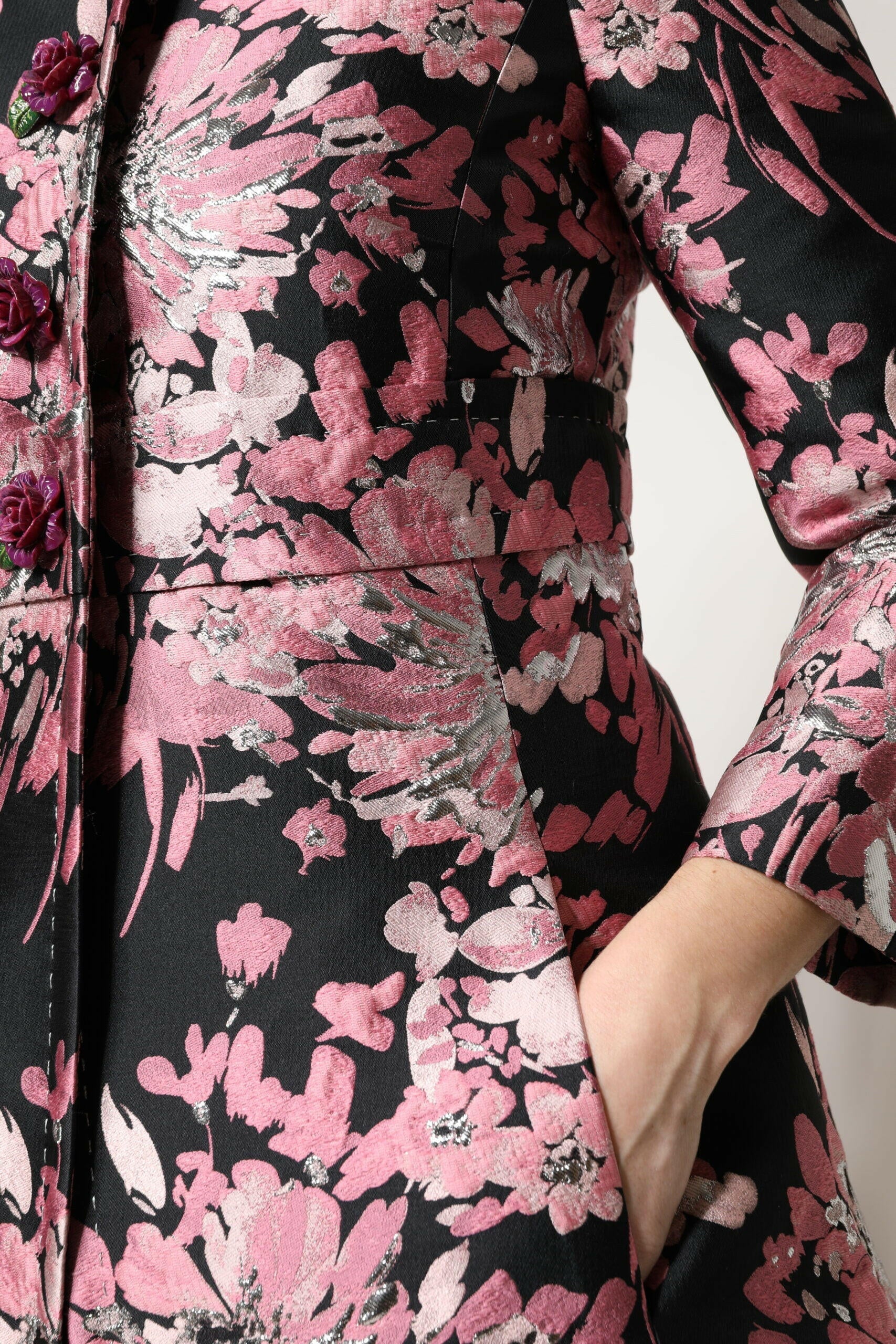 Dolce & Gabbana Pink Black Floral Brocade Trenchcoat Jacket