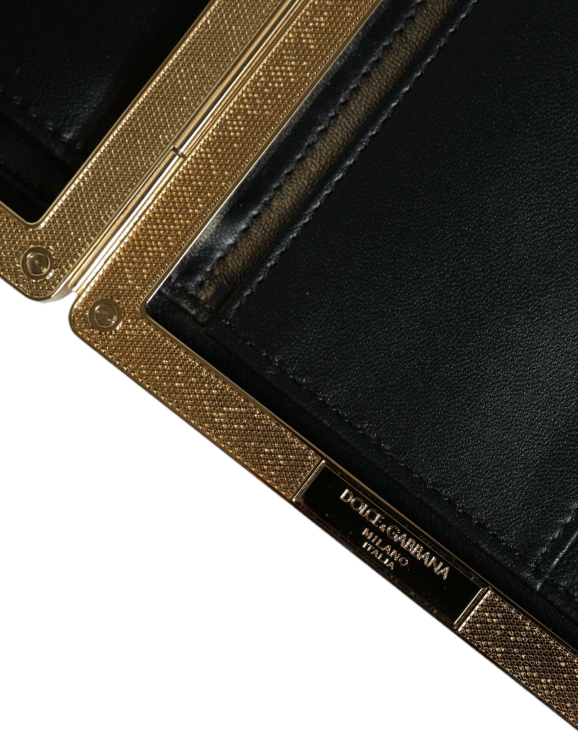 Dolce & Gabbana White Leather Gold Frame Clutch Evening Party Purse Bag