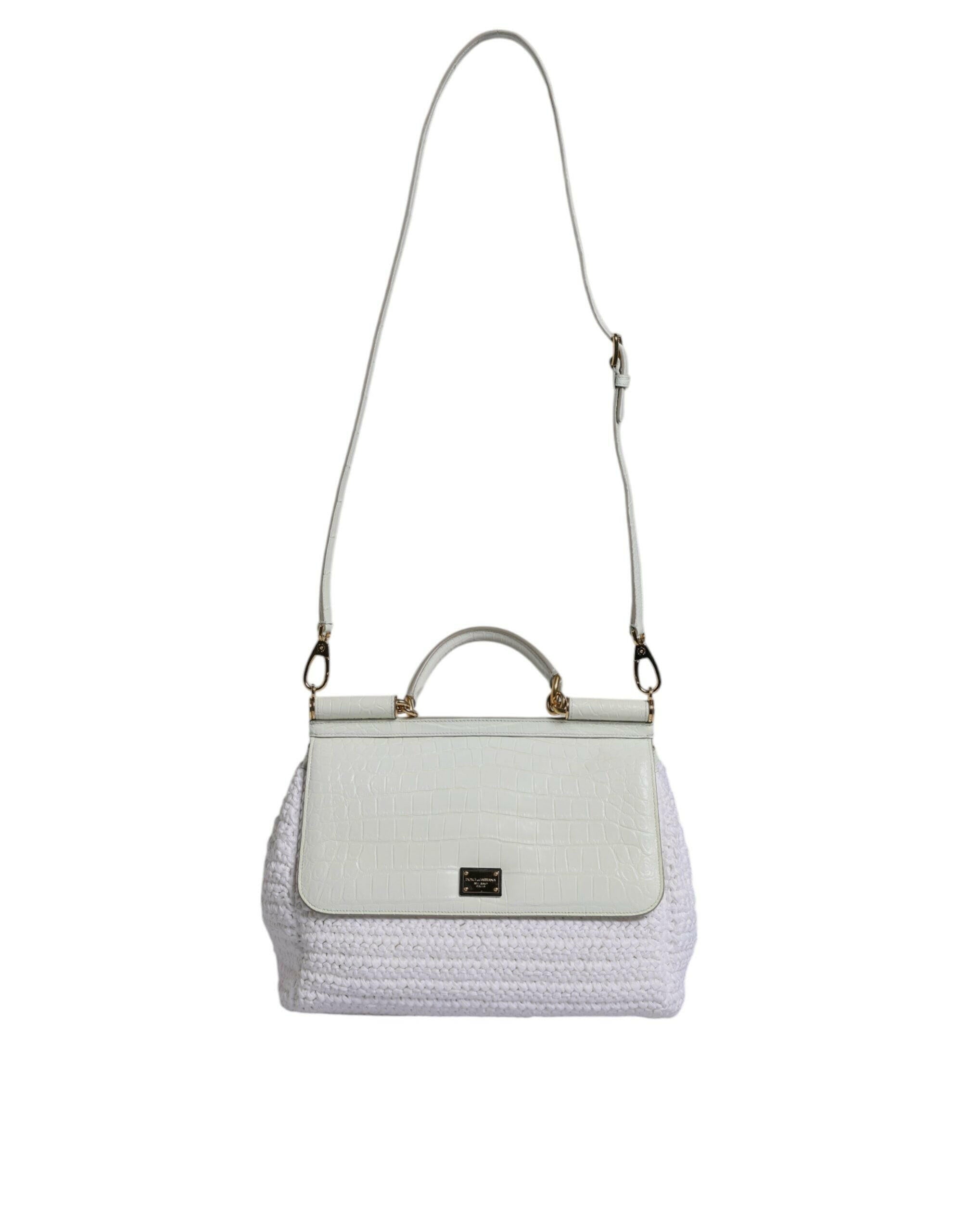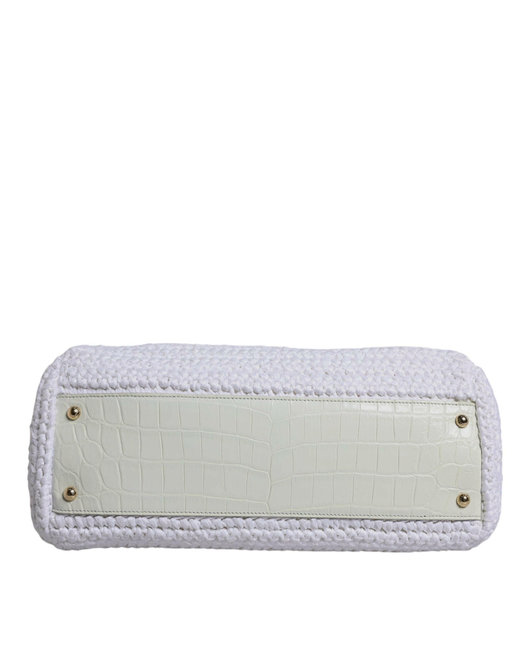 Dolce & Gabbana White Rafia Leather Top Handle Crossbody Bag