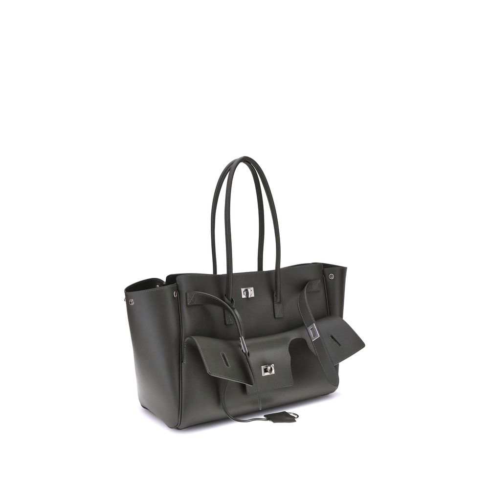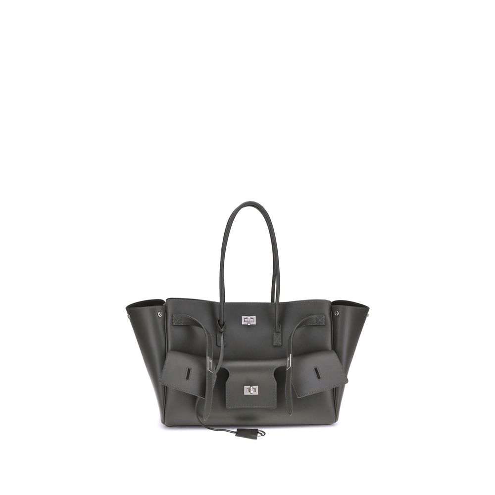 A bolsa de ombro média Bel Air da Balenciaga é um acessório espaçoso e funcional com um design versátil. Possui duas alças para facilitar o transporte e o logotipo da Balenciaga Paris em relevo com laminação prateada na parte de trás, atestando sua autenticidade. Com detalhes em metal prateado e um chaveiro removível com argola dupla em espiral, esta bolsa foi projetada para organização: inclui botões de pressão nas laterais para modular o formato, um fecho giratório e cintos na frente com o logotipo gravado. O interior conta com um bolso frontal grande, um compartimento principal aberto, dois bolsos internos com zíper e dois bolsos internos planos, oferecendo soluções práticas para todas as necessidades.