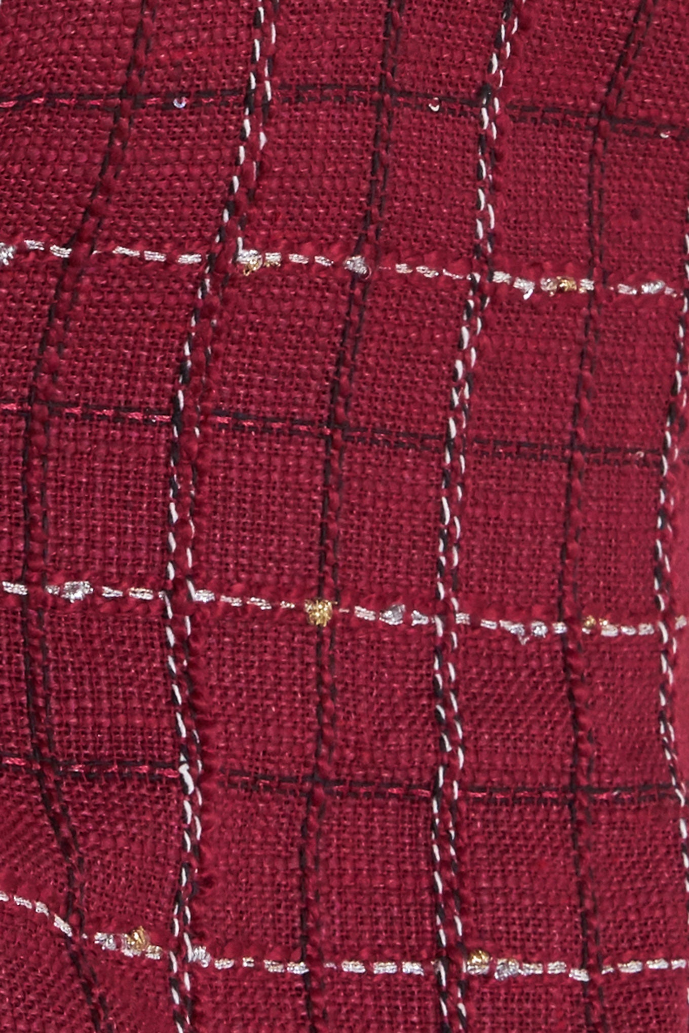 Top de alcinha em tweed com alças finas, detalhe peplum e fechamento em zíper nas costas.