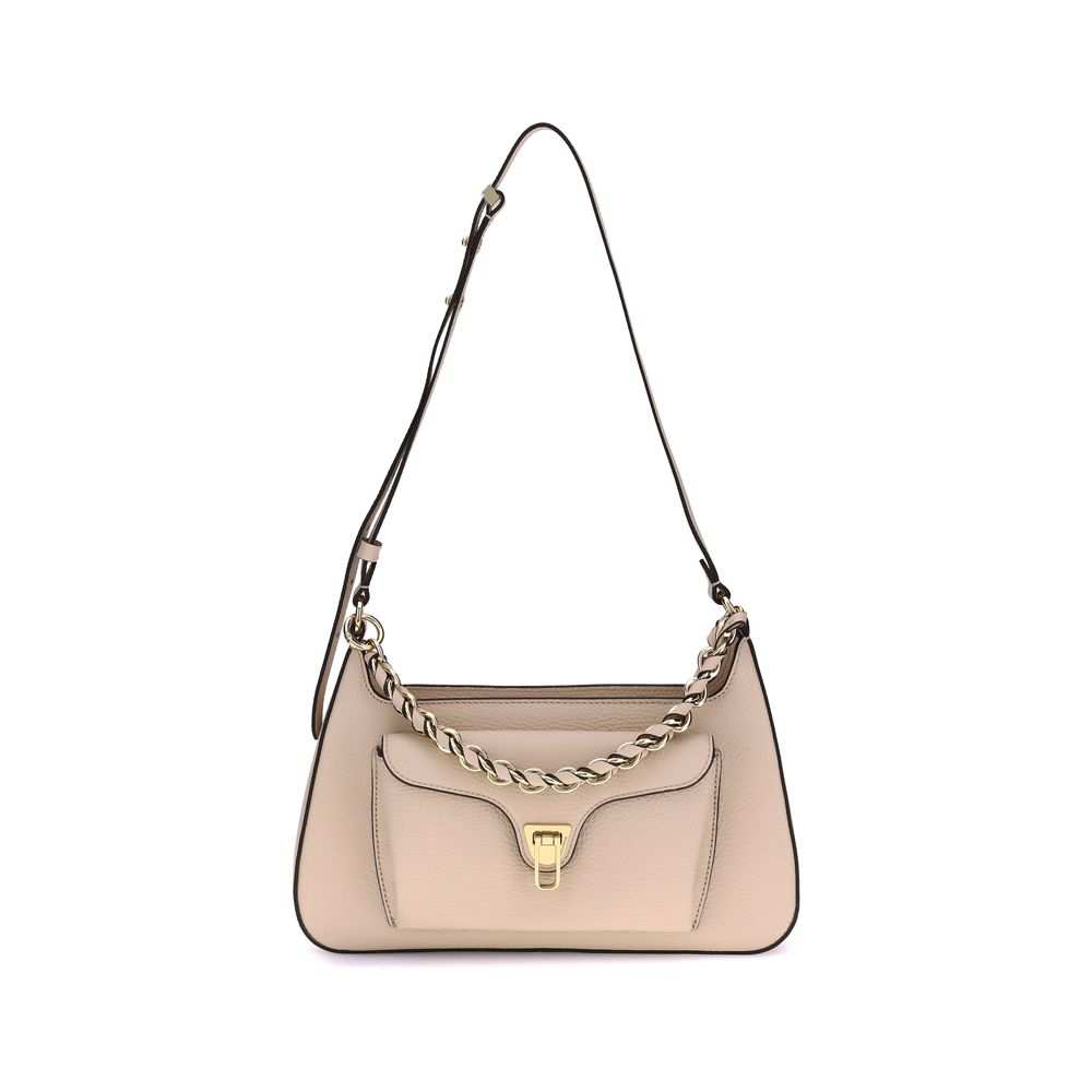 Bolsa de ombro Coccinelle Bos Taurus em couro de bezerro bege