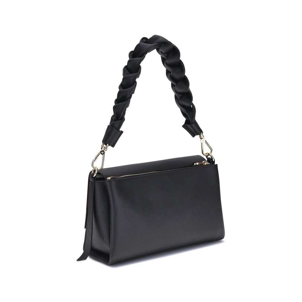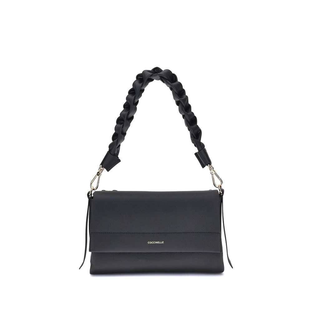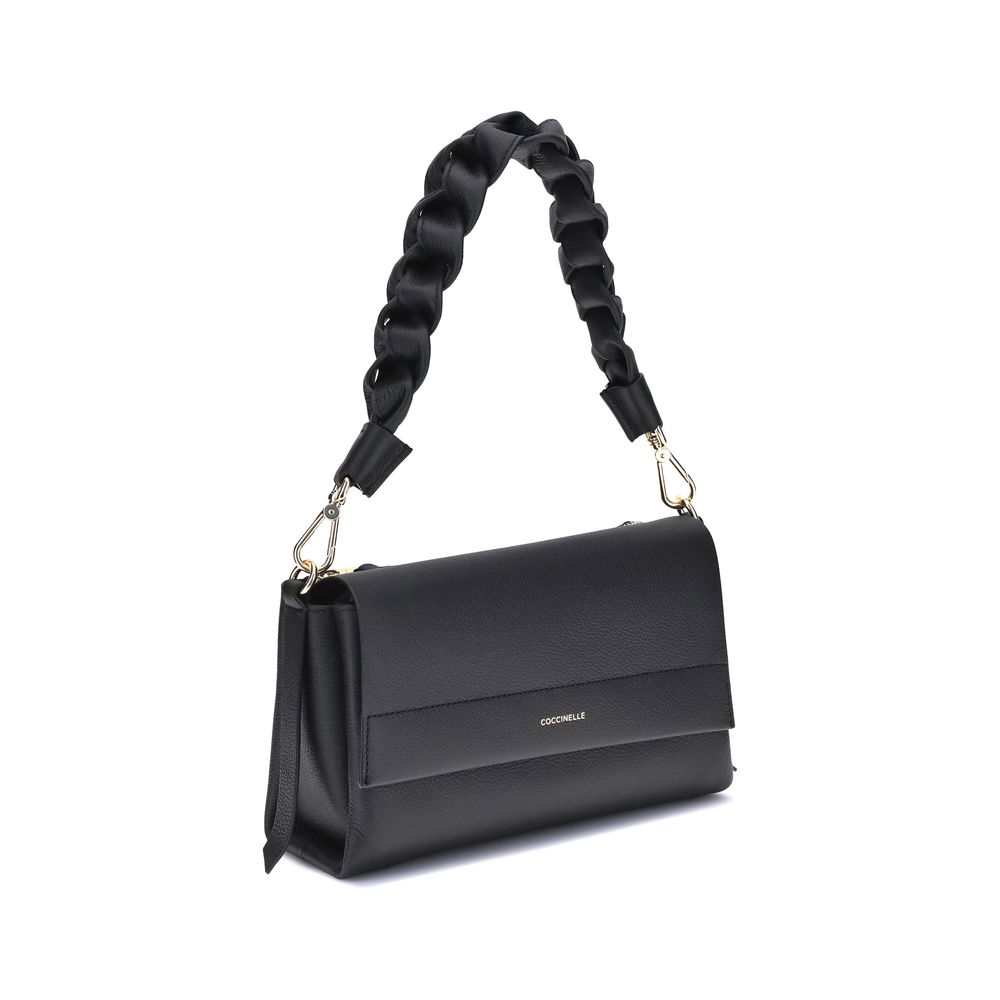 Bolsa de ombro Coccinelle Bos Taurus em couro de bezerro preto