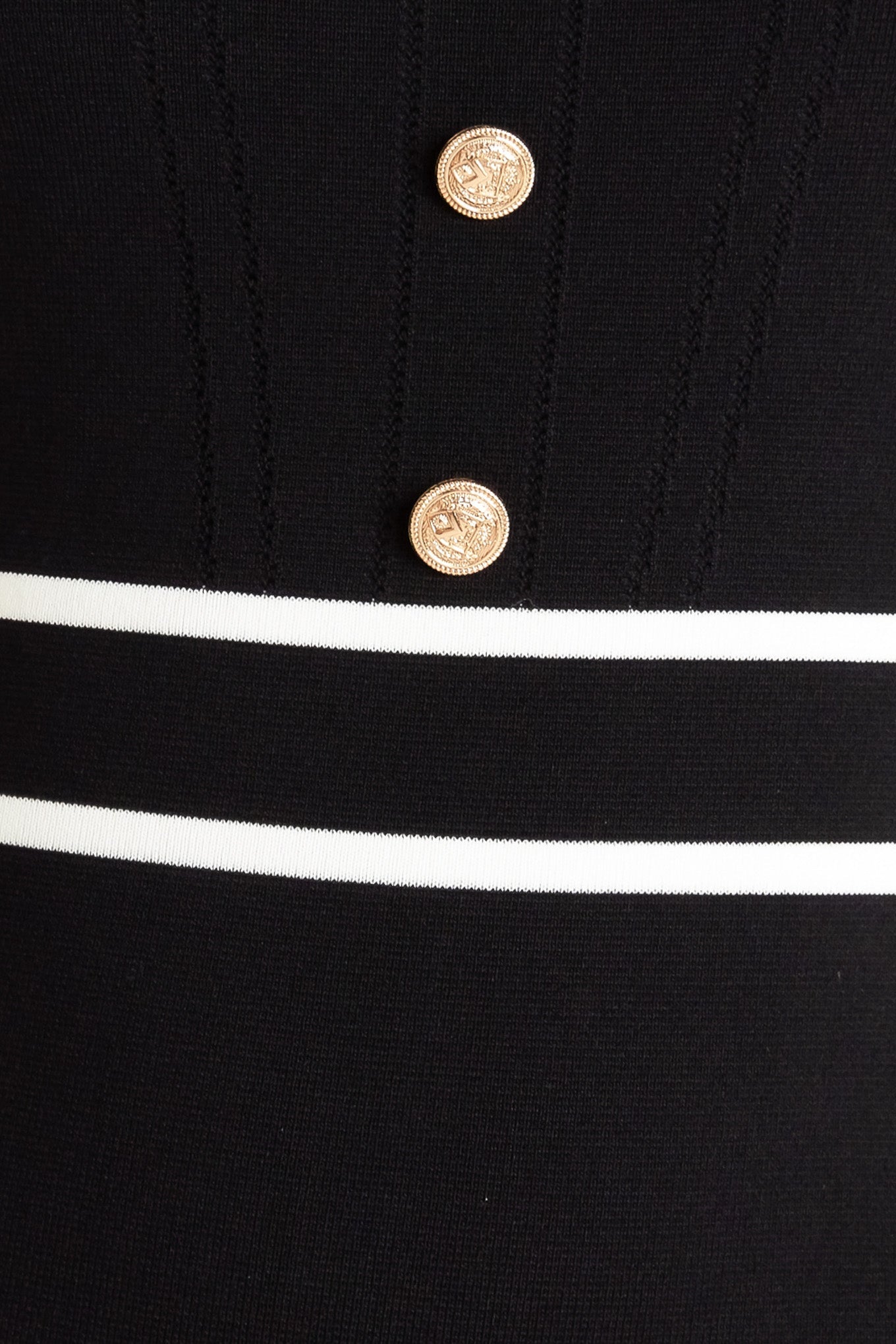 A sweater knit midi dress featuring square neckline, short sleeve and front button detail