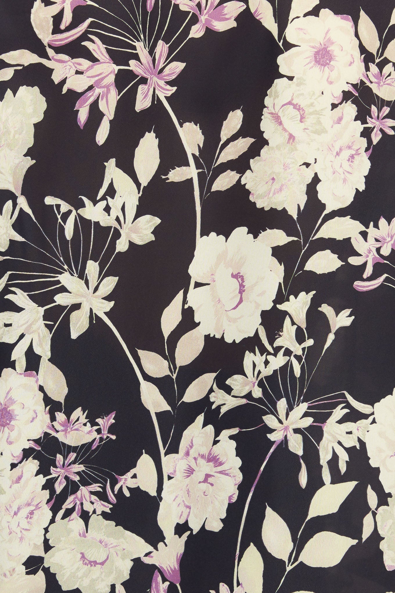 Blusa de tecido estampado com laço frontal, mangas compridas e fechamento por botões.