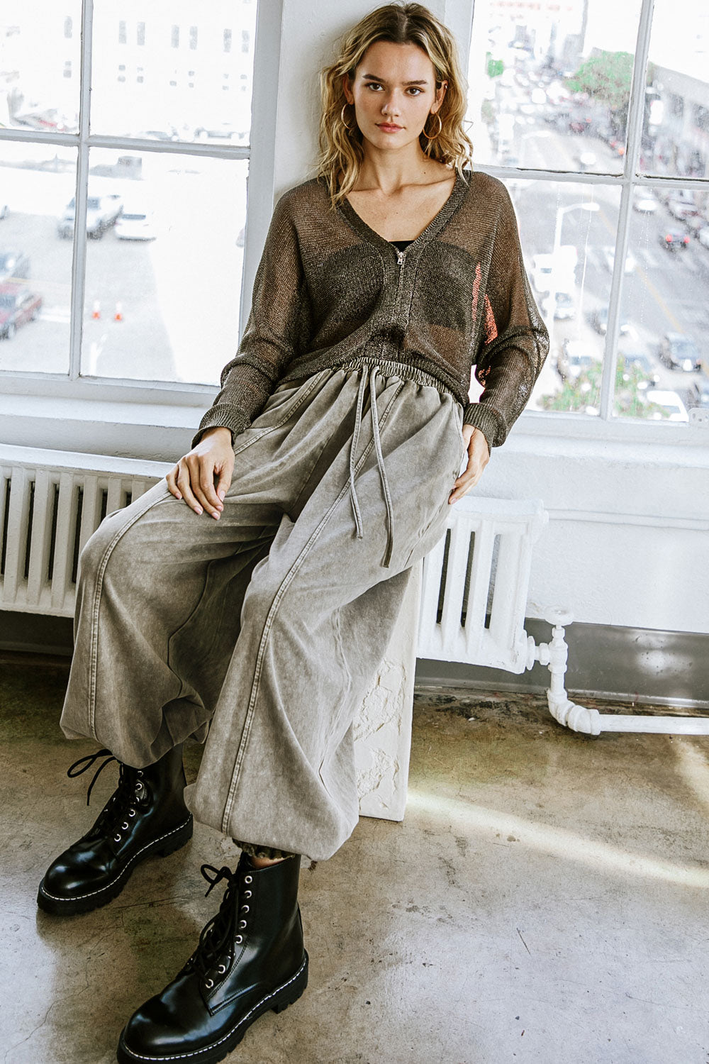 Desfrute do luxo com a nossa blusa Here Goes Nothing. Confeccionada com um toque de fio metálico, esta blusa de tricô apresenta decote em V e mangas compridas para uma silhueta refinada. Com fechamento frontal em zíper, eleve seu estilo com esta peça exclusiva.
