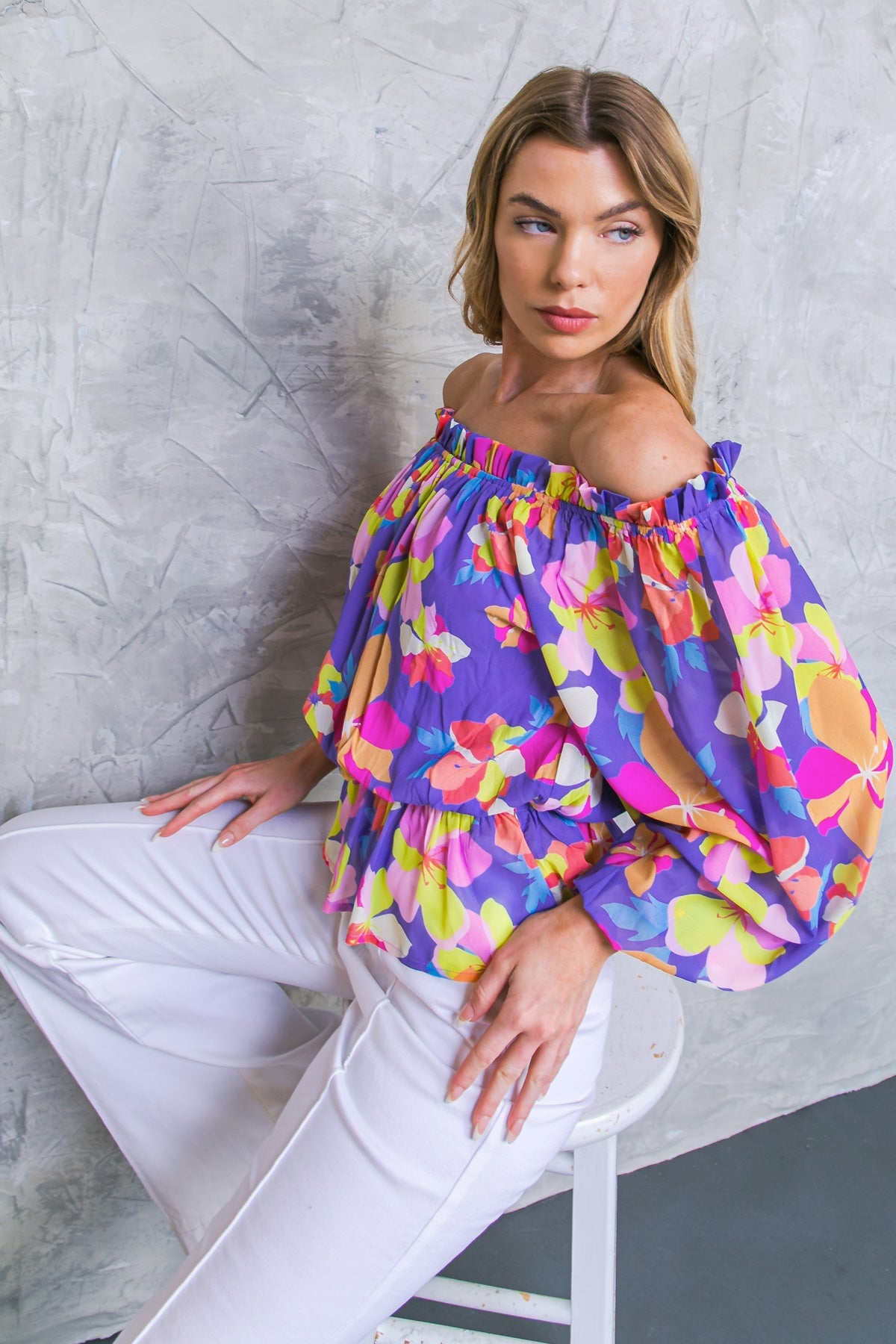 Esta blusa de tecido plano roxa da HONESTLY TRUTHFULLY é uma adição elegante a qualquer guarda-roupa. Possui decote ombro a ombro com acabamento franzido, mangas bufantes, elástico na cintura e peplum para um caimento perfeito. Desfrute de um visual confortável e estiloso com esta blusa leve, ideal para qualquer ocasião.