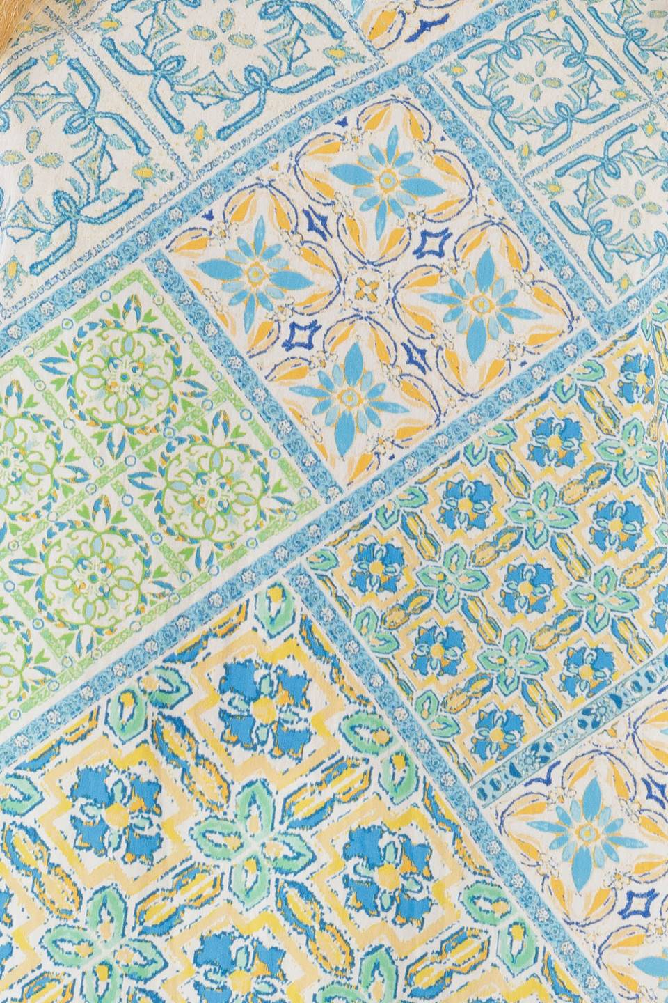 Blusa estampada em tecido plano com decote em V franzido e mangas também franzidas.