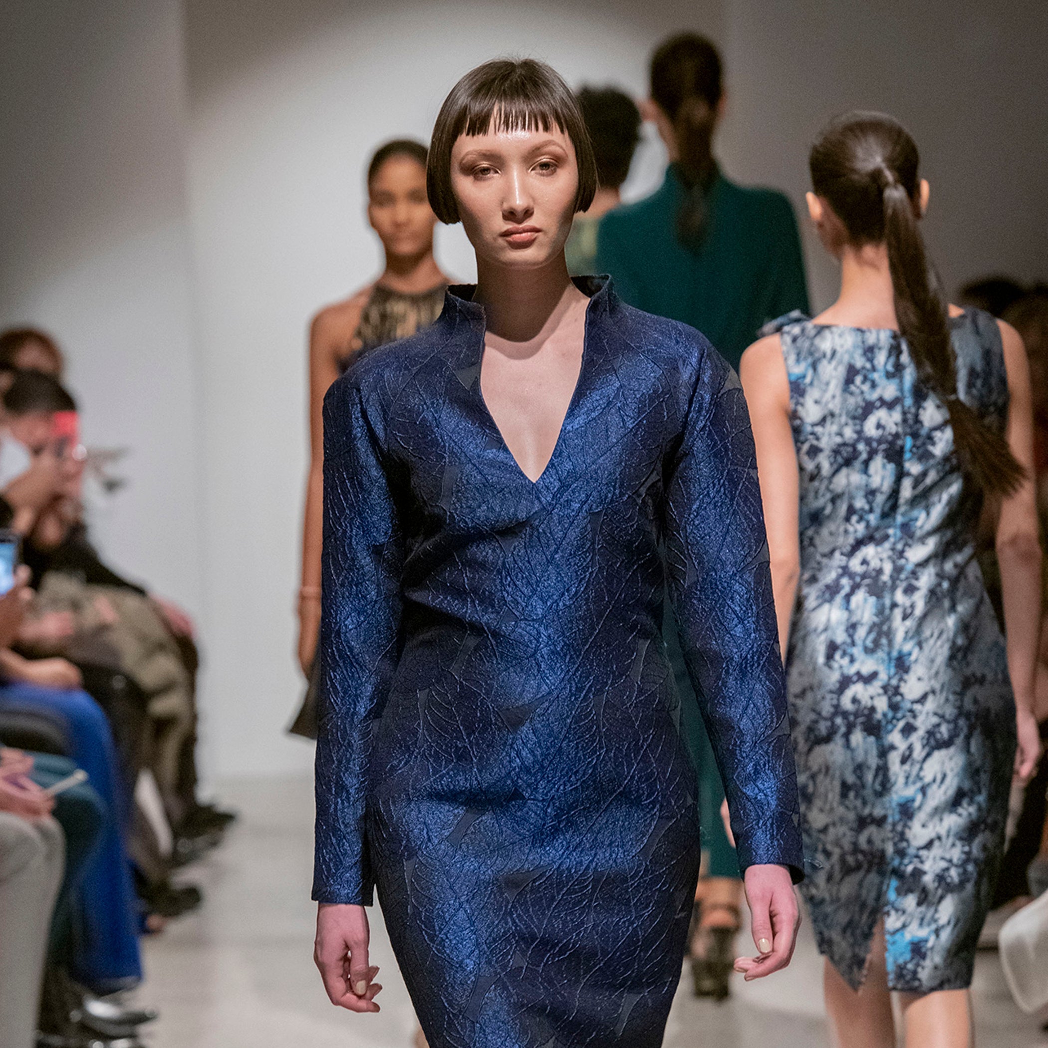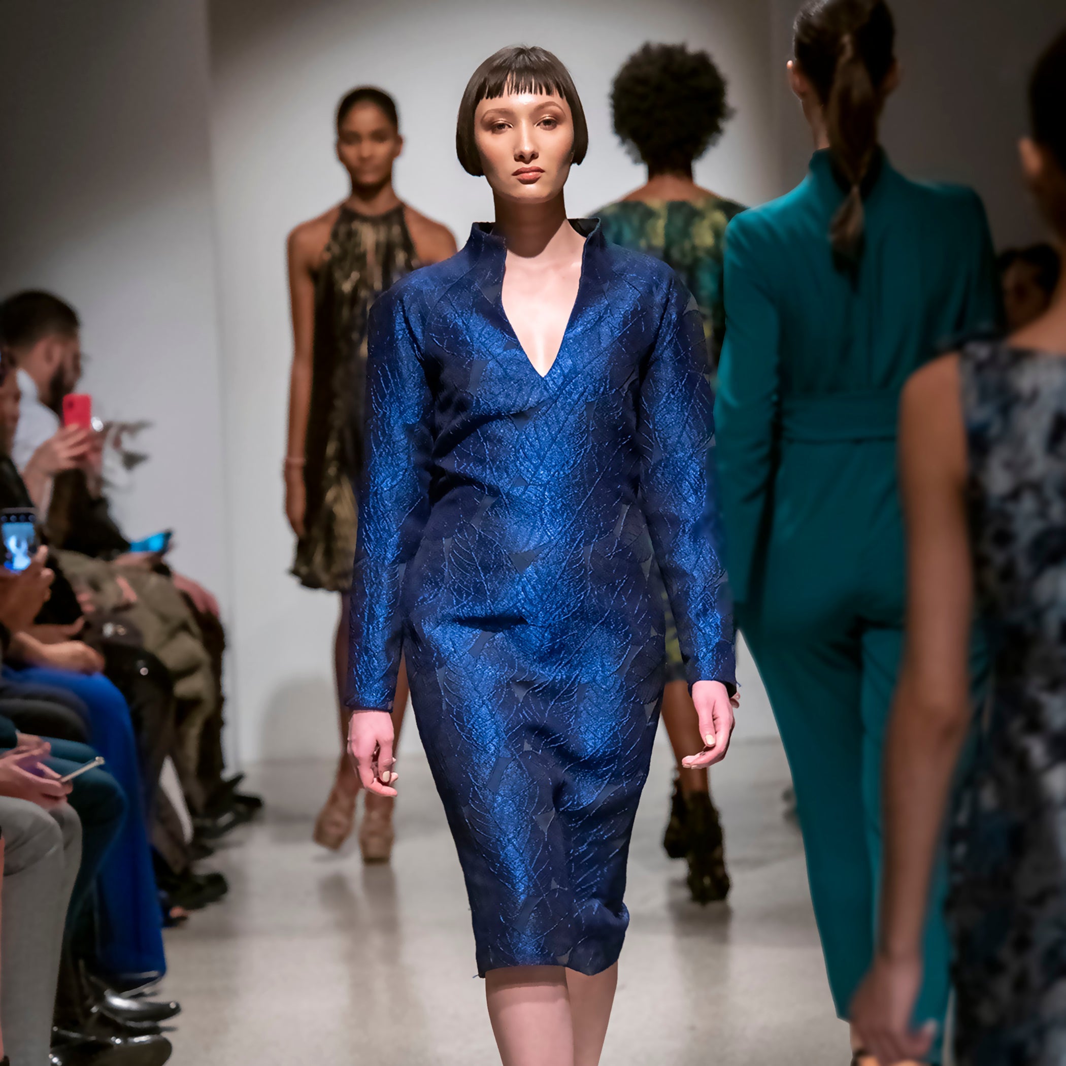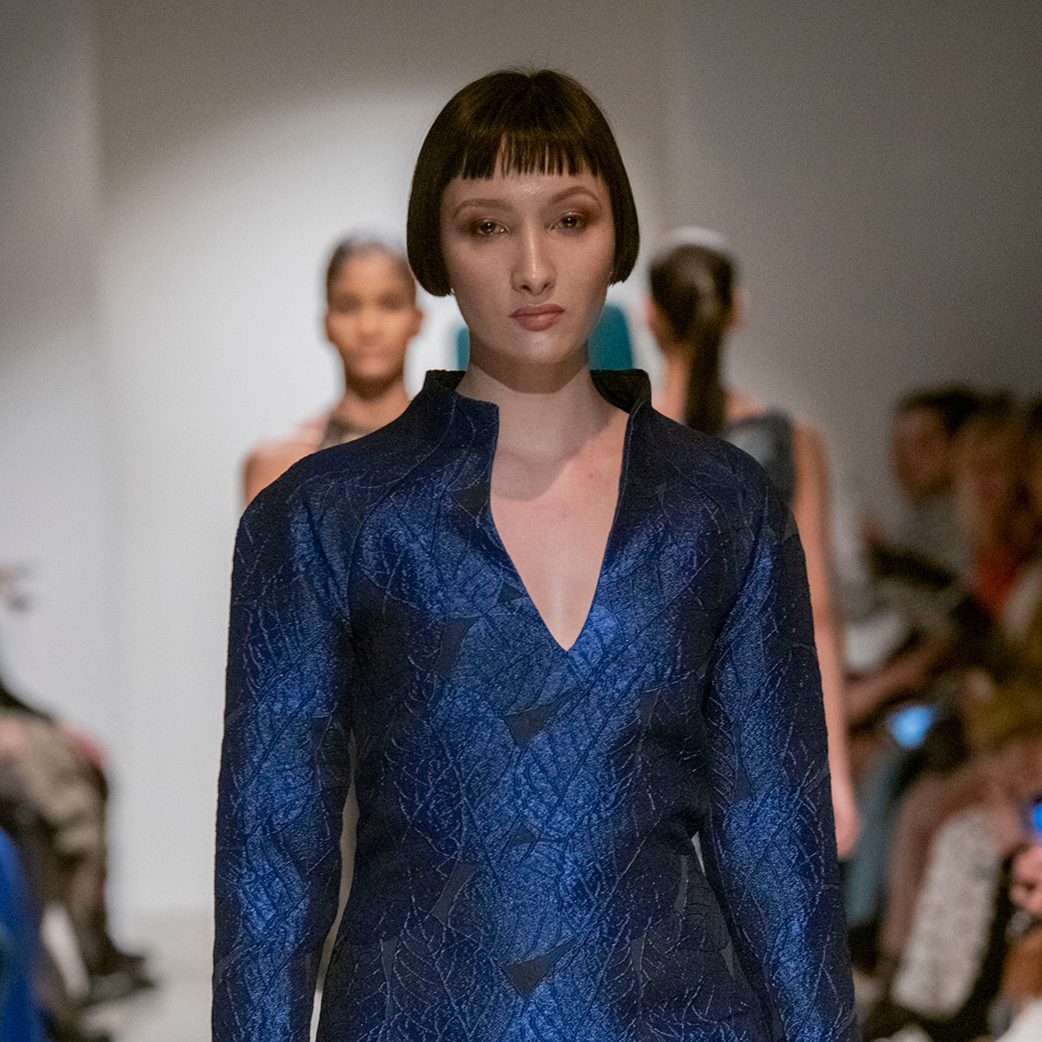 Desfrute da experiência de moda definitiva com o nosso vestido Funnel Sheath. Com um tecido Jacquard exclusivo, este vestido fará você se destacar com seu contraste deslumbrante e toque luxuoso. Entre no centro das atenções e exale uma aura moderna e majestosa a cada passo.