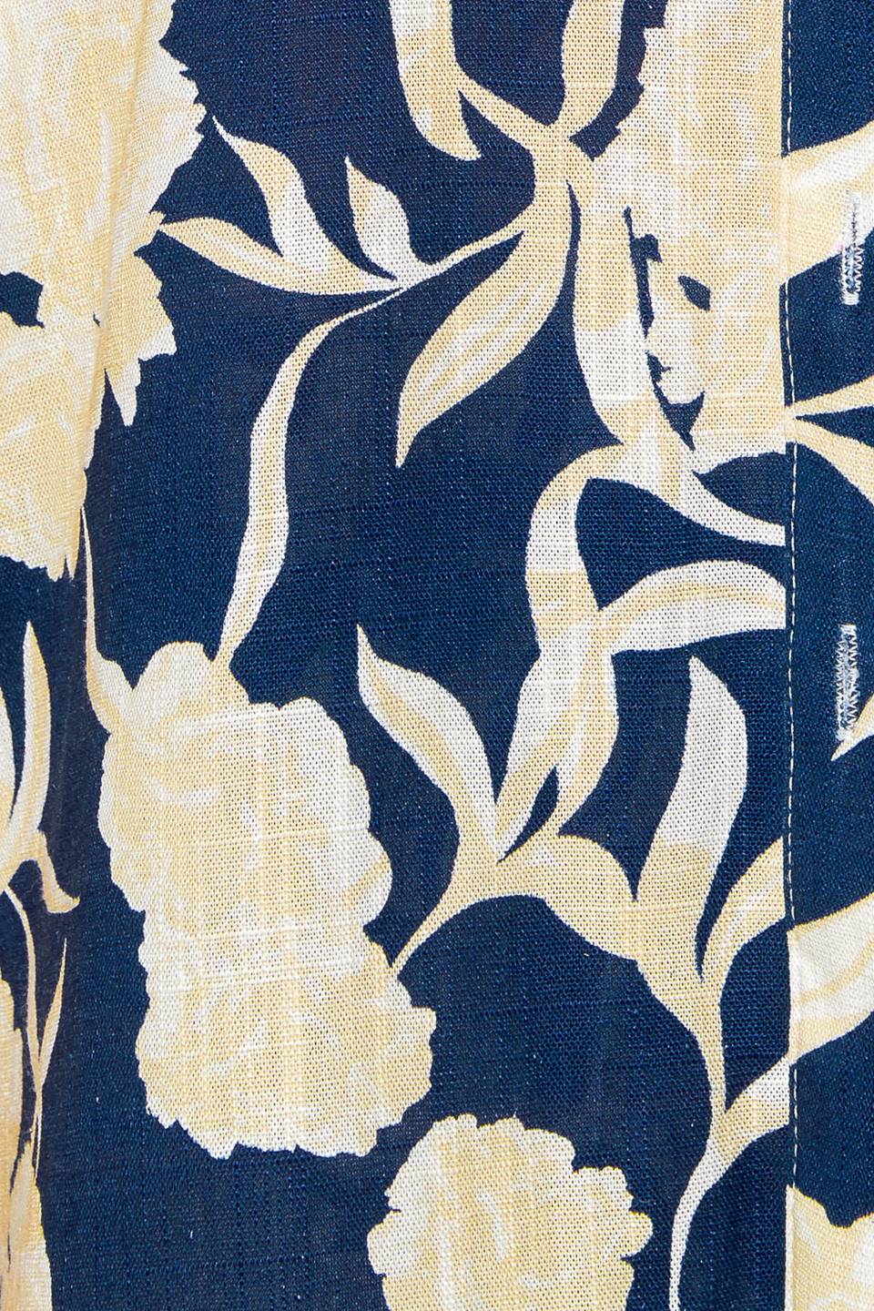 Conjunto de blusa e shorts estampados em tecido plano. Blusa com gola, fechamento frontal por botões e mangas curtas. Shorts com cós elástico na parte de trás.